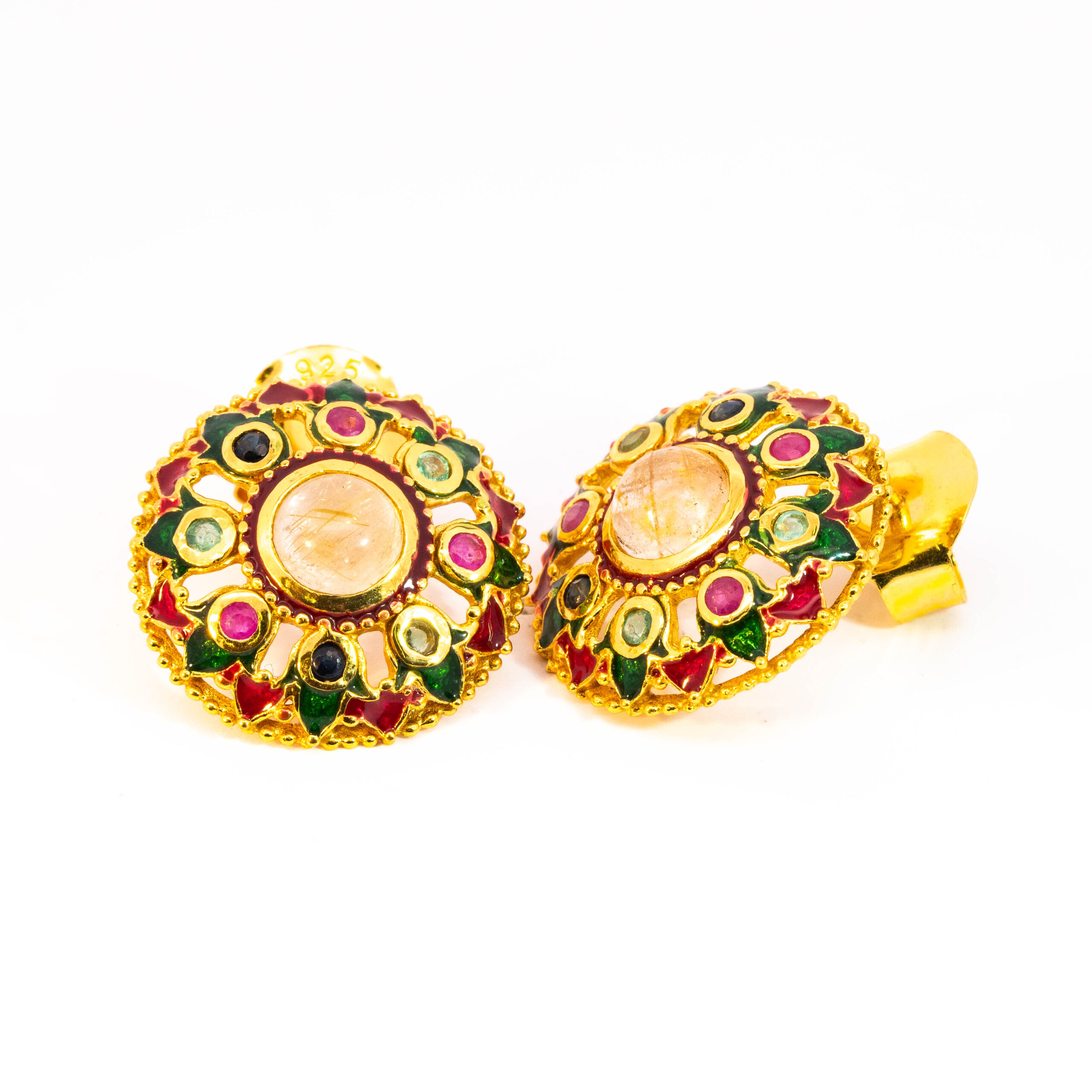 Sterling silver jewelry with 22k gold plated, natural stone and enamel.