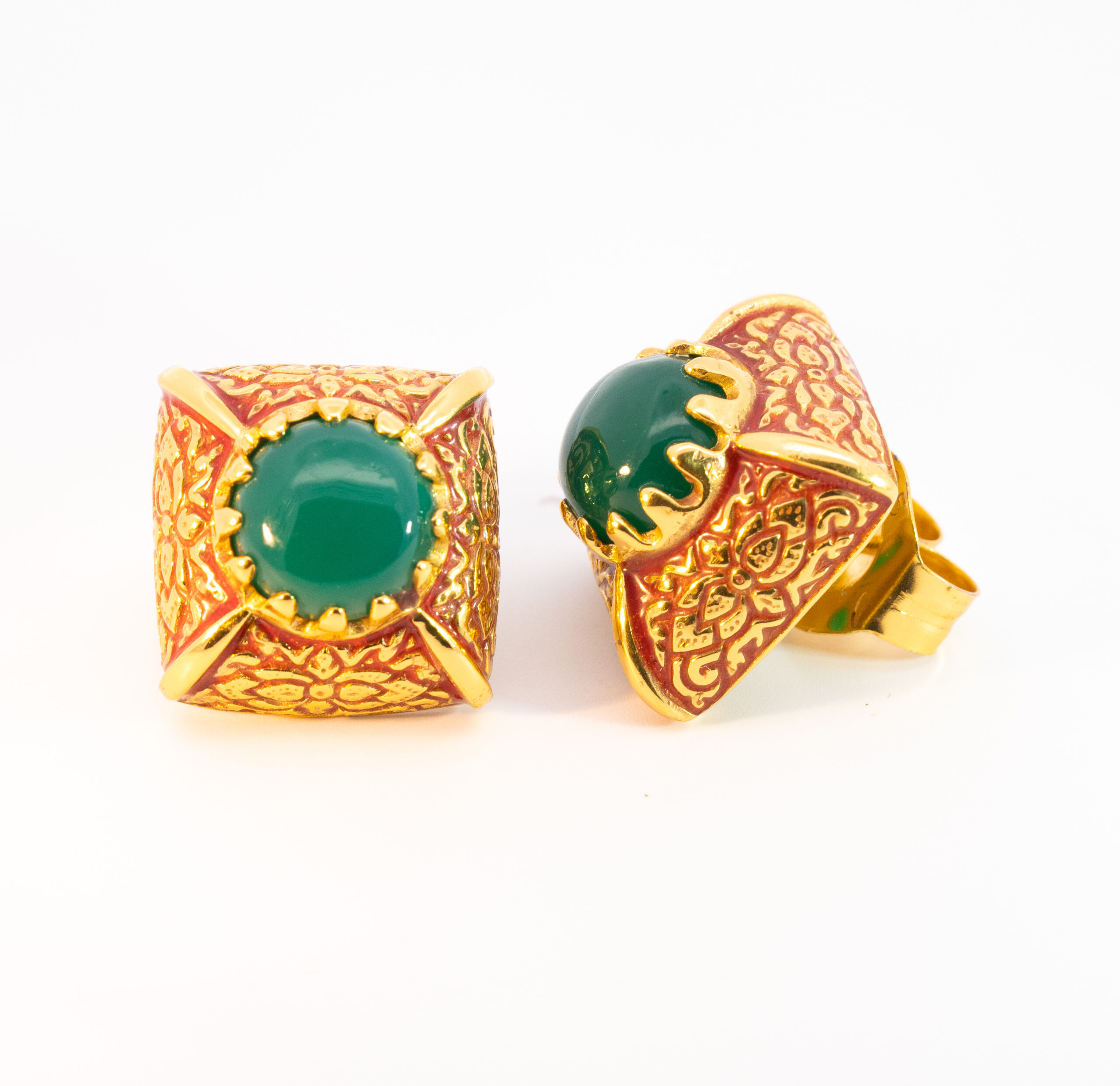 Sterling silver jewelry with 22k gold plated, natural stone and enamel.