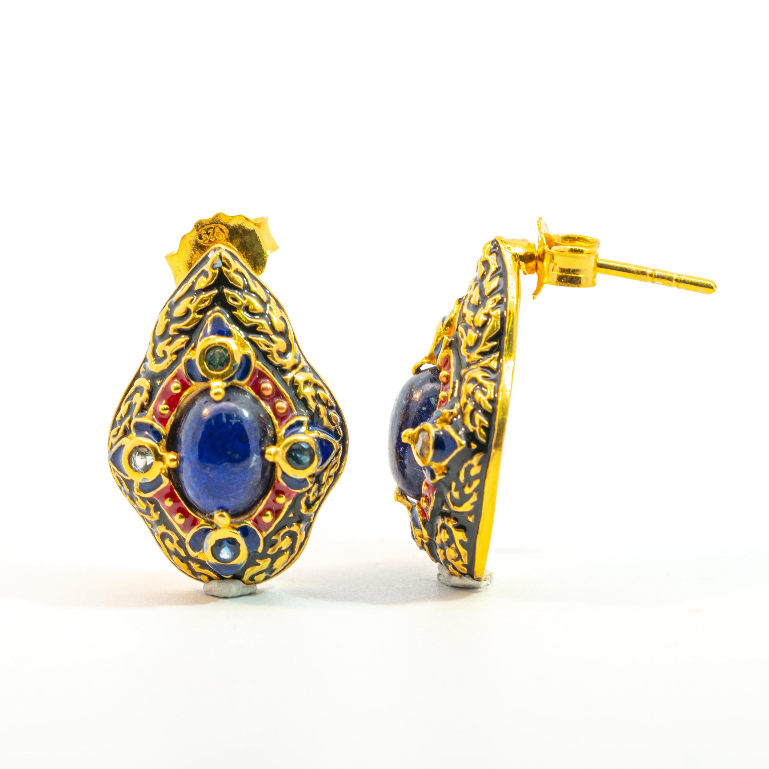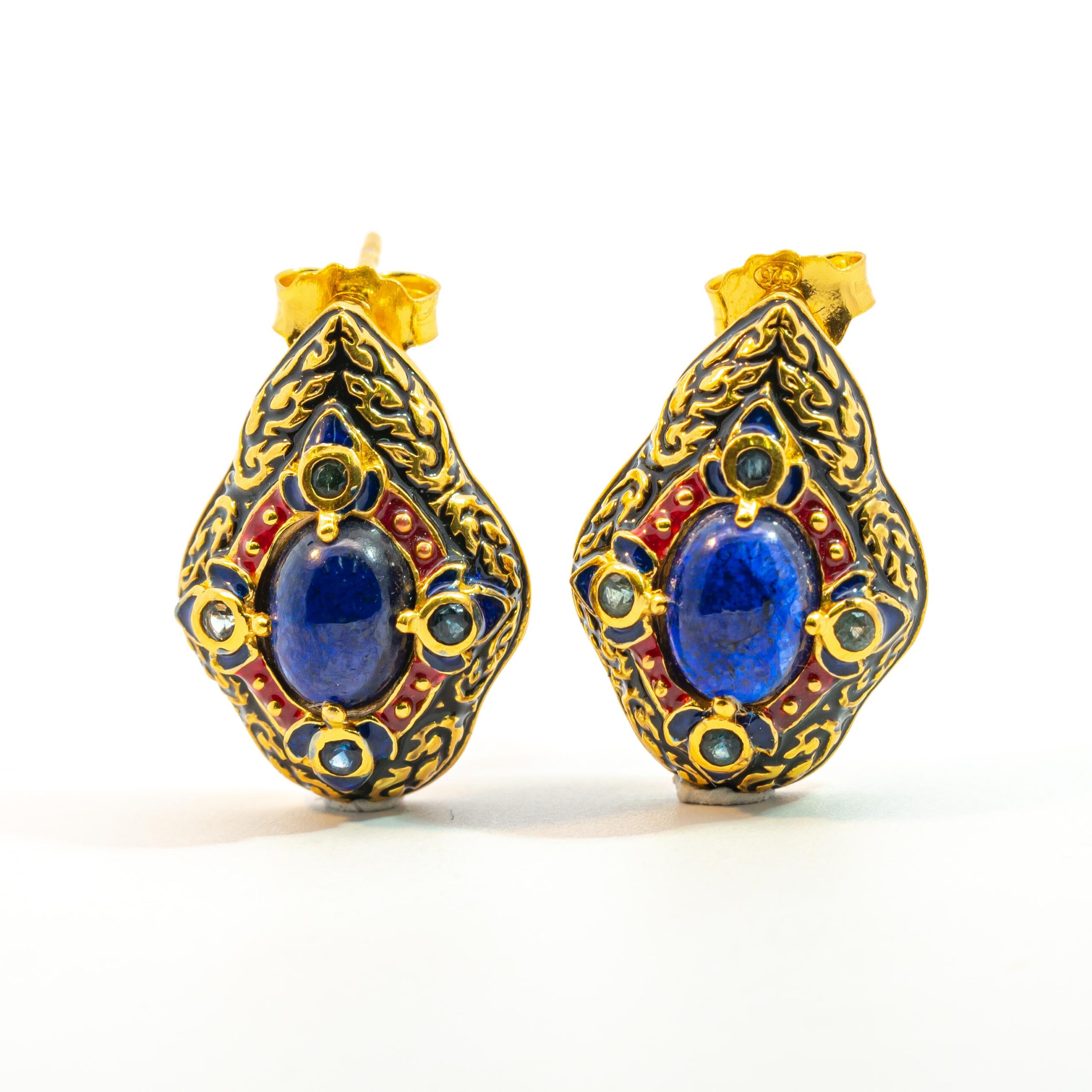 Sterling silver jewelry with 22k gold plated, natural stone and enamel.