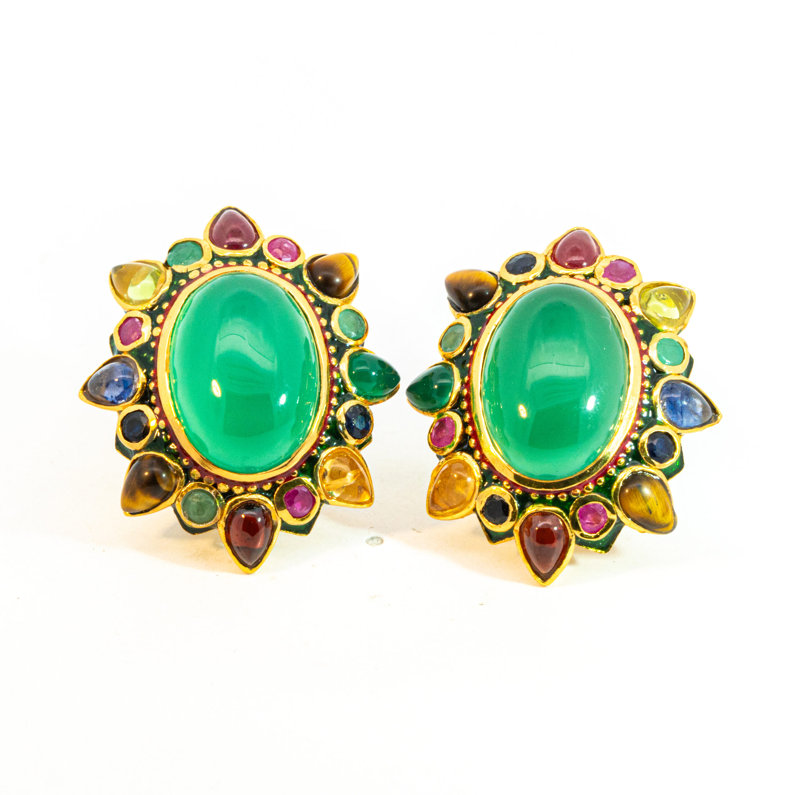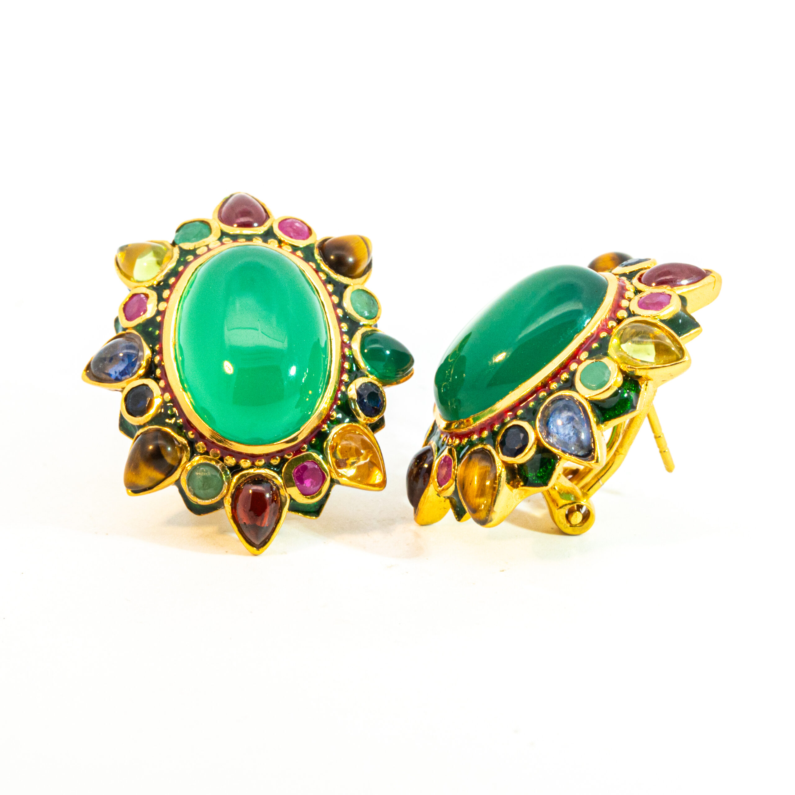 Sterling silver jewelry with 22k gold plated, natural stone and enamel.