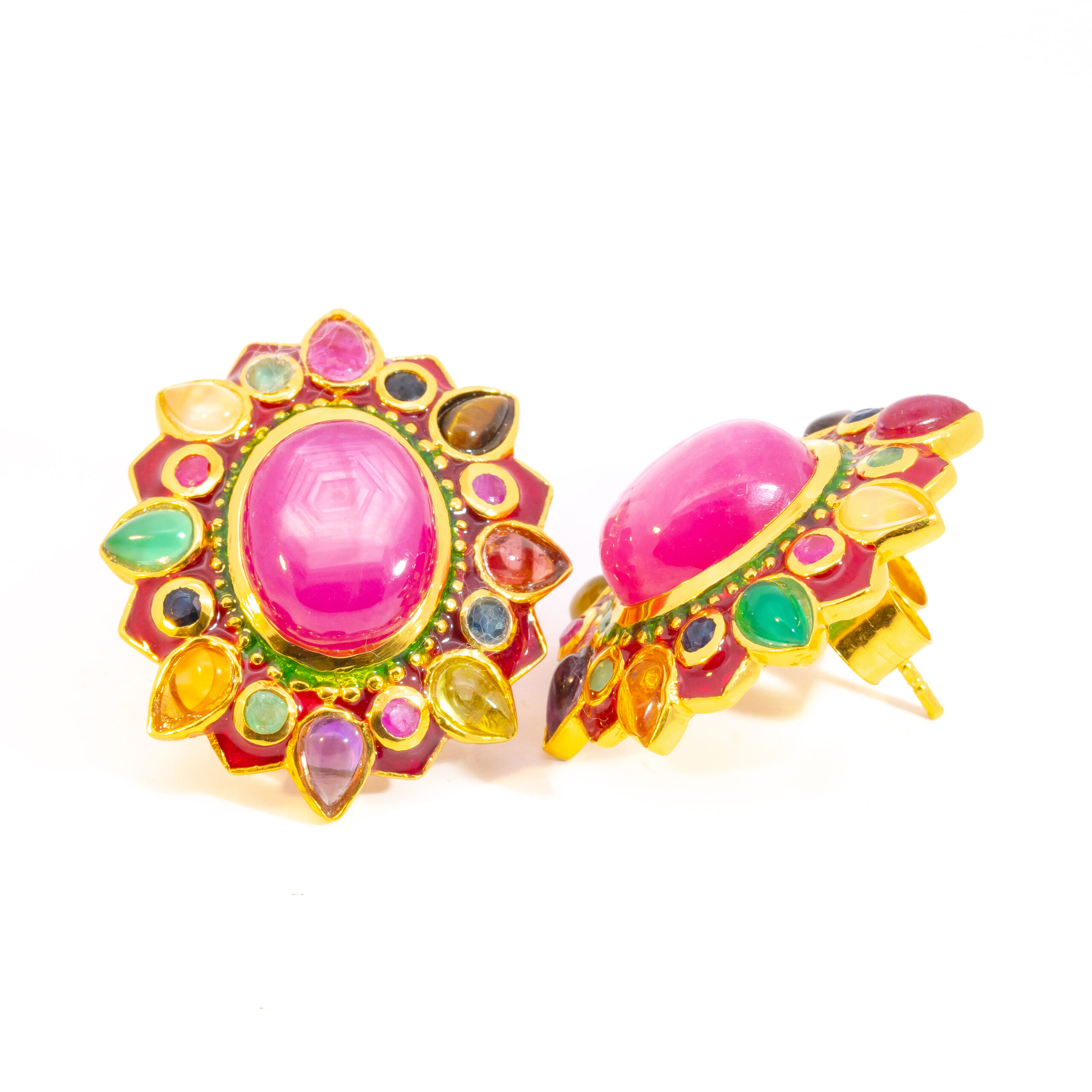 Sterling silver jewelry with 22k gold plated, natural stone and enamel.