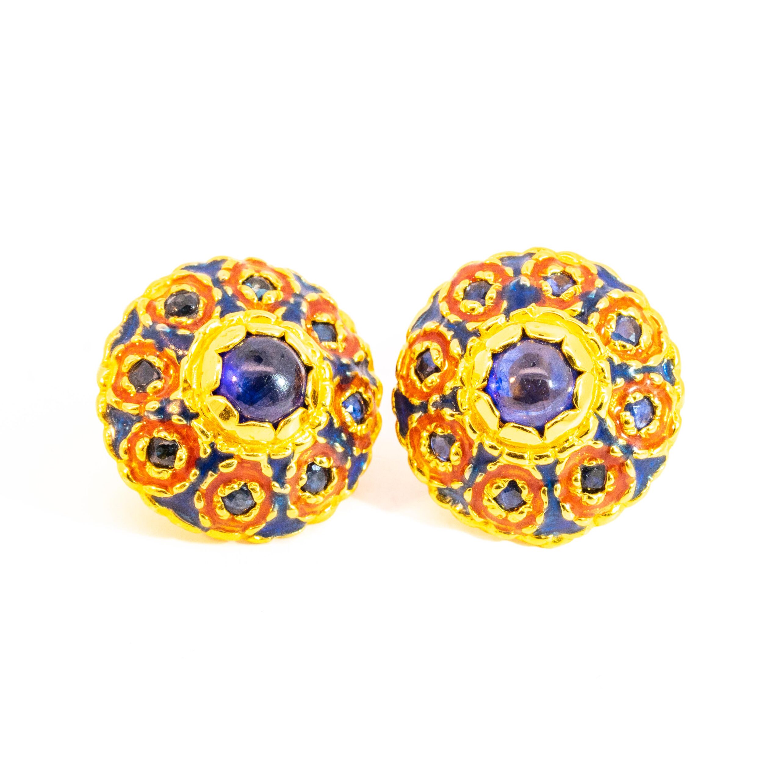 Sterling silver jewelry with 22k gold plated, natural stone and enamel.