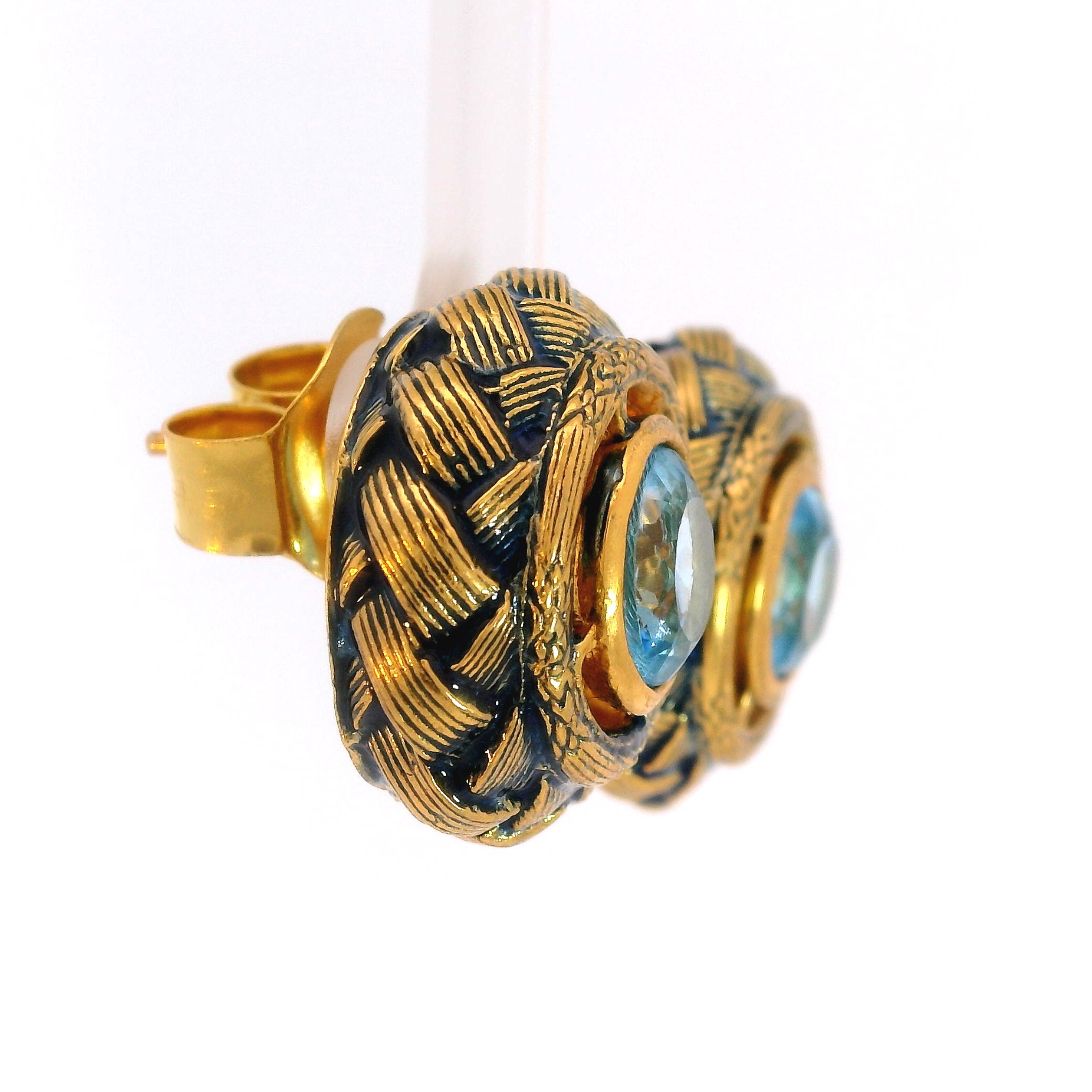 Sterling silver jewelry with 22k gold plated, natural stone and enamel.