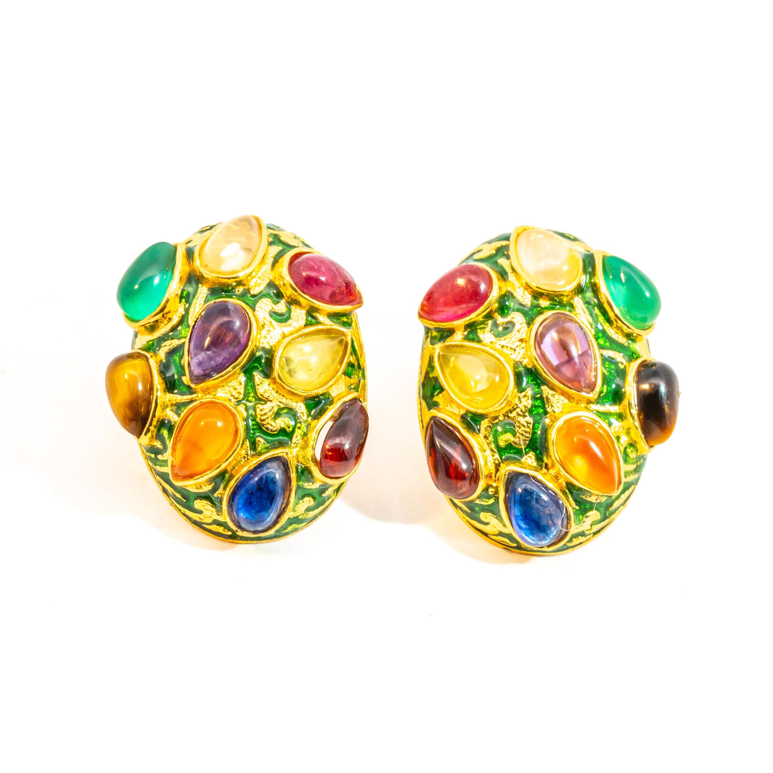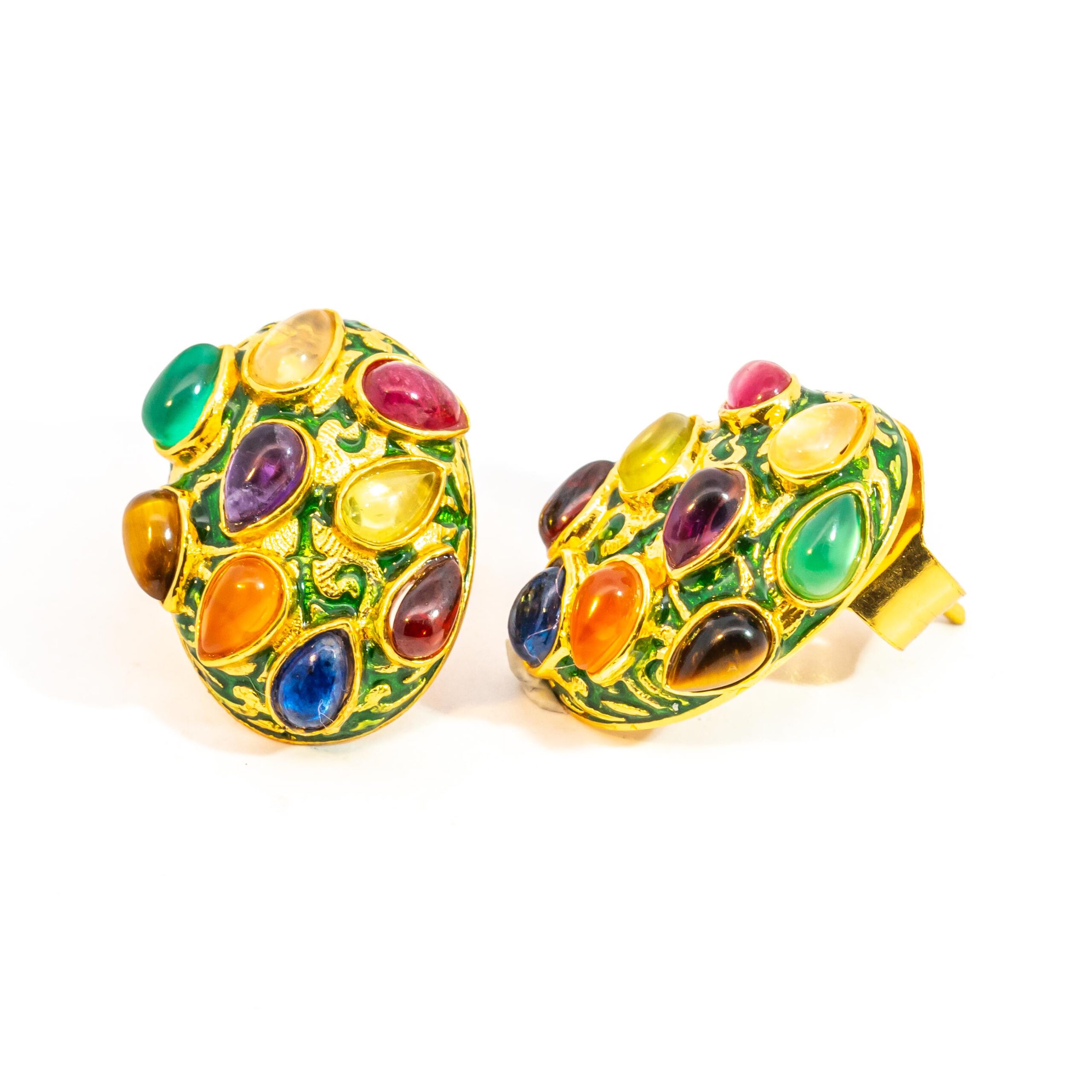 Sterling silver jewelry with 22k gold plated, natural stone and enamel.
