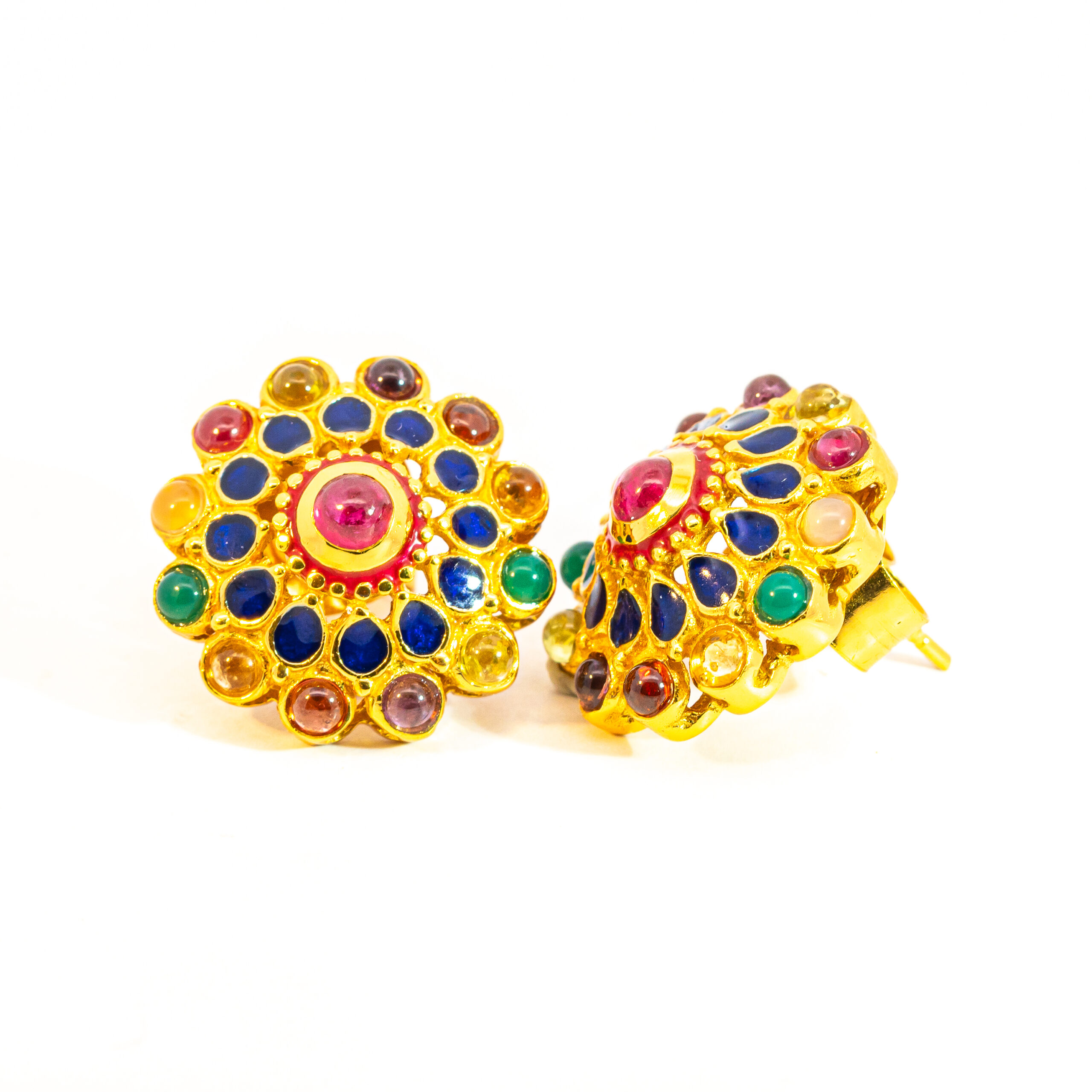 Sterling silver jewelry with 22k gold plated, natural stone and enamel.