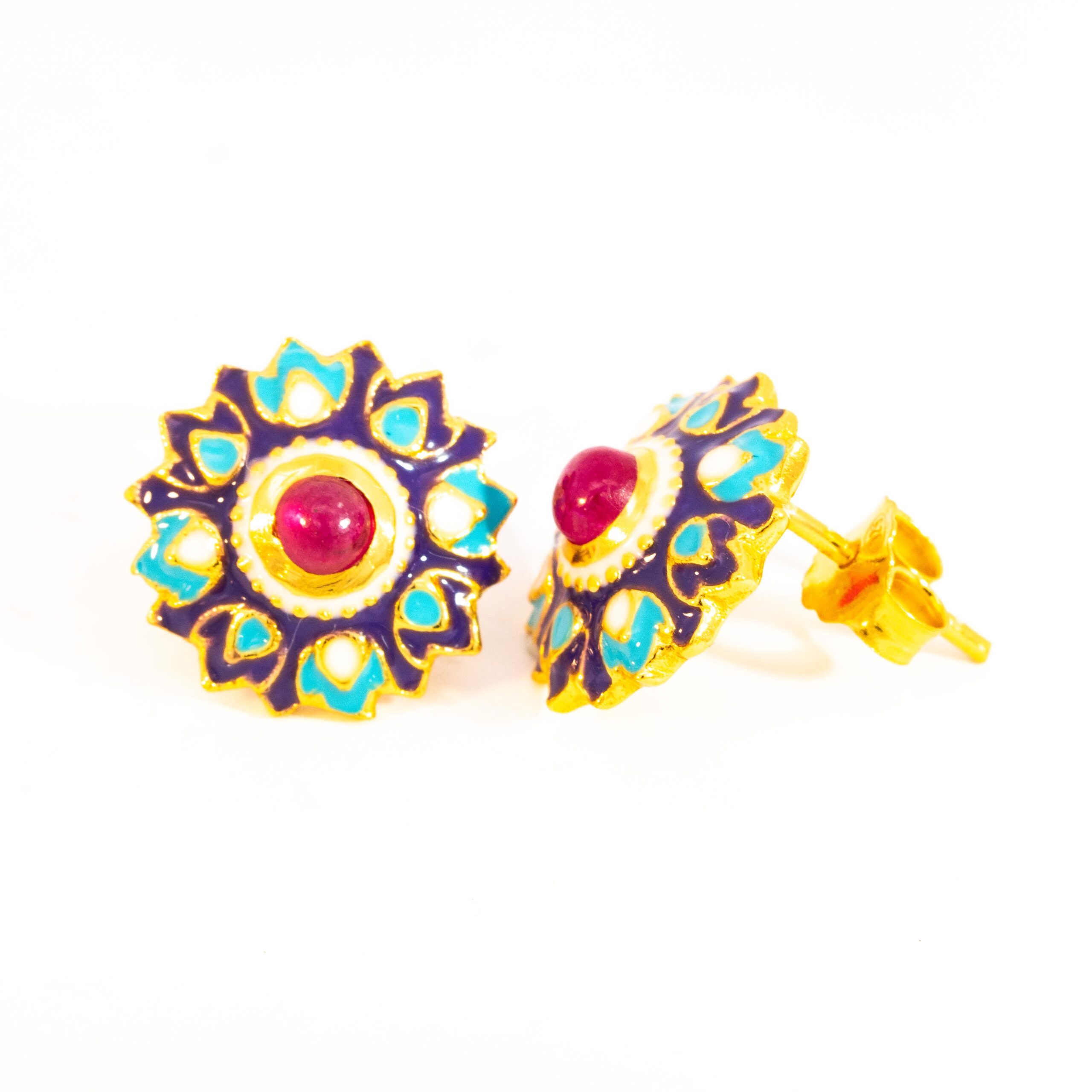 Sterling silver jewelry with 22k gold plated, natural stone and enamel.