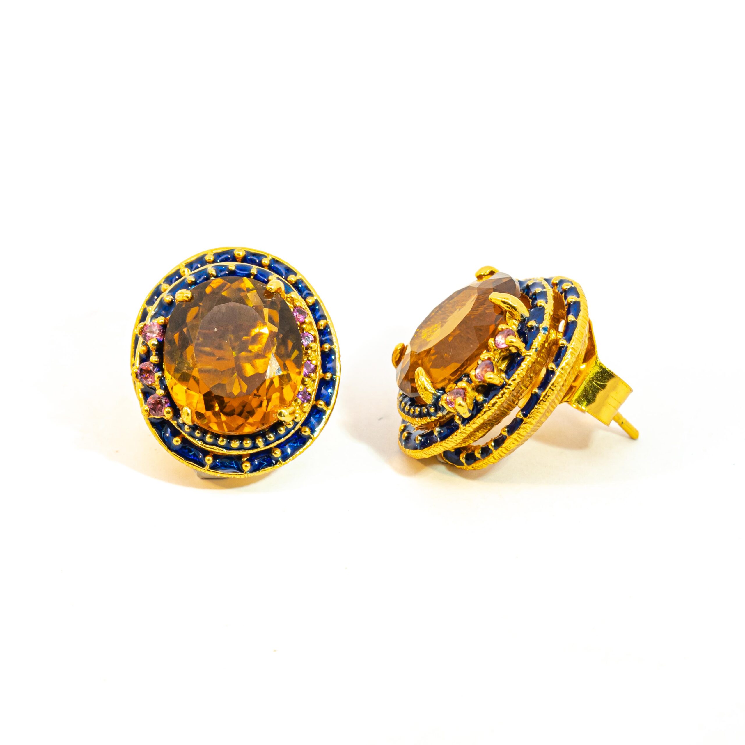 Sterling silver jewelry with 22k gold plated, natural stone and enamel.
