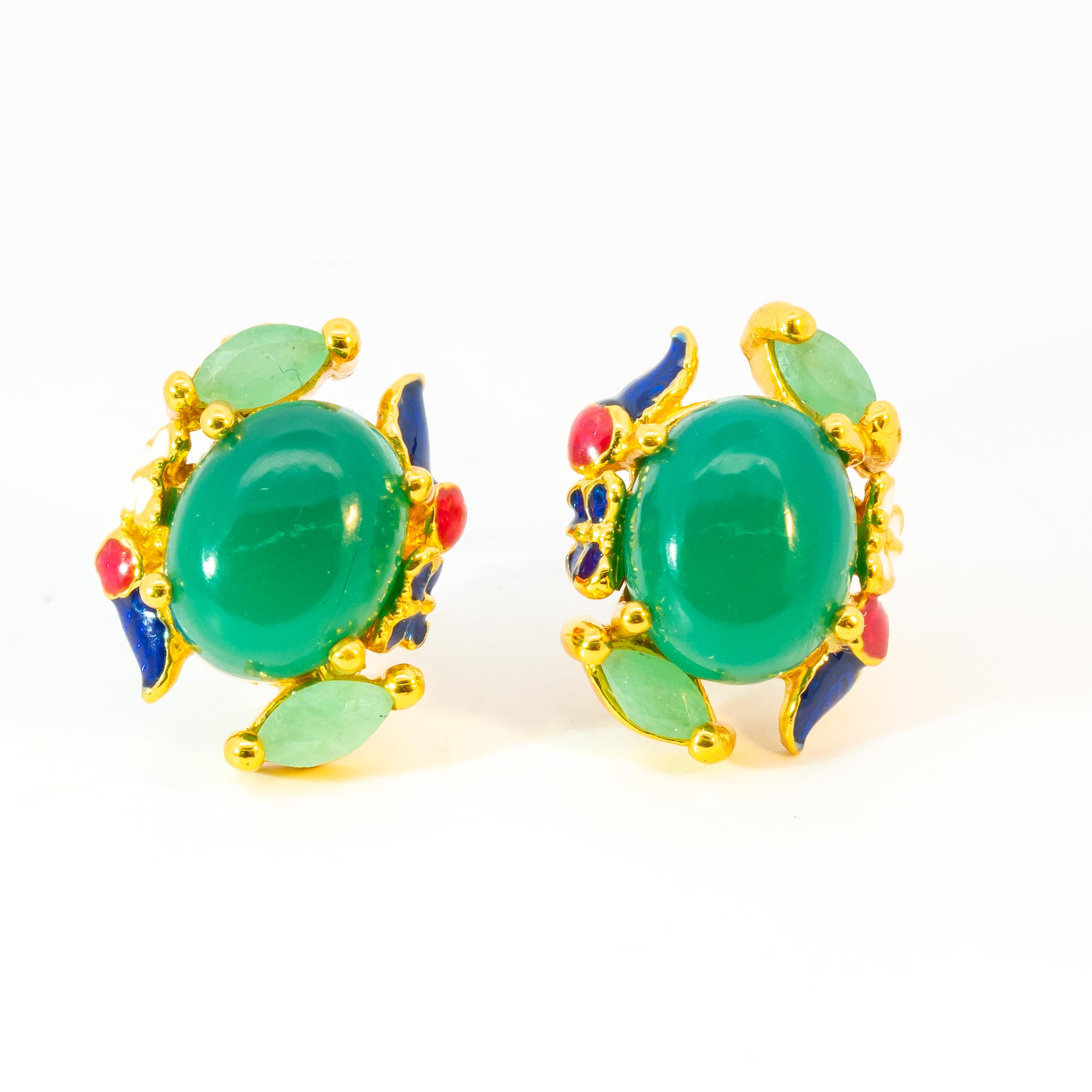 Sterling silver jewelry with 22k gold plated, natural stone and enamel.