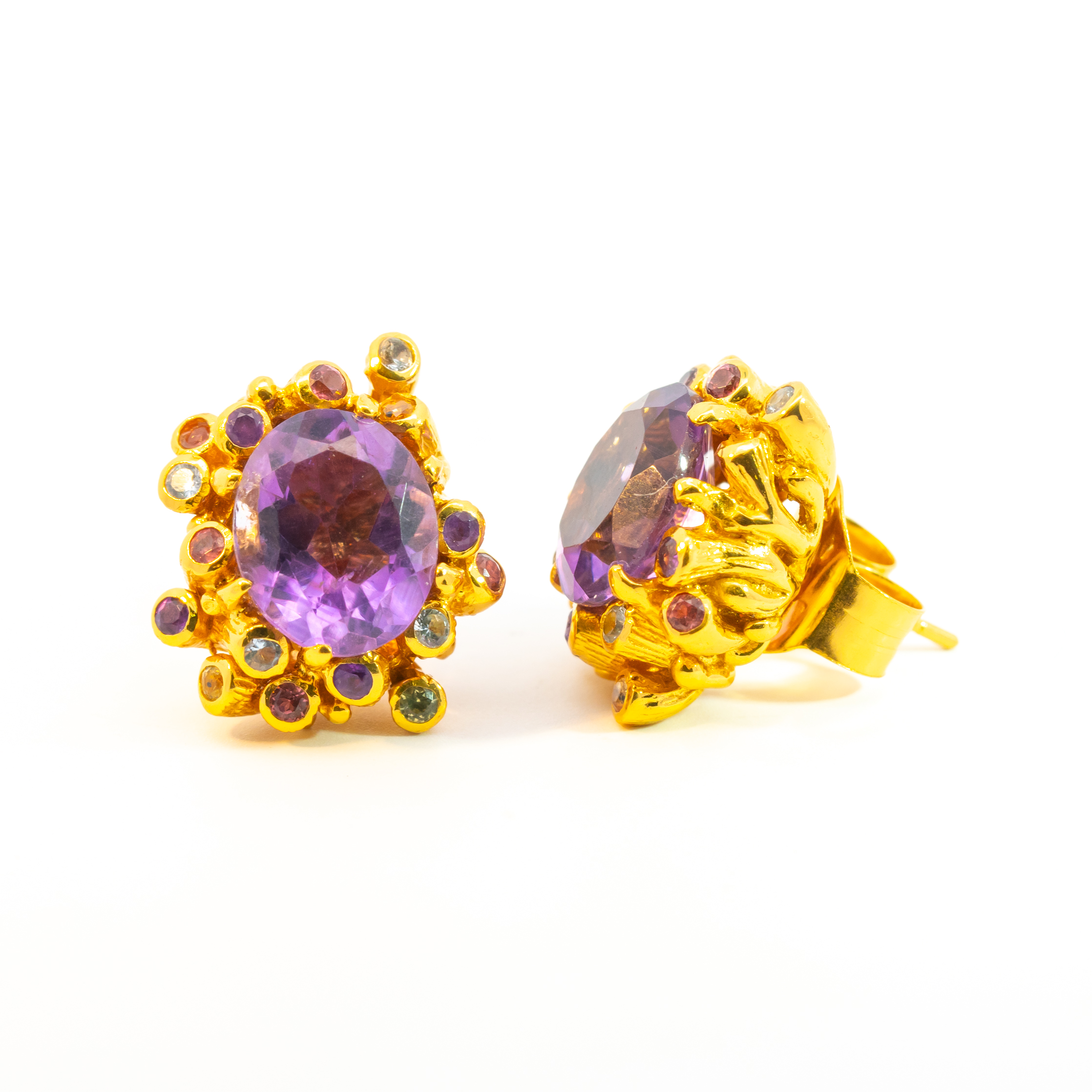 Sterling silver jewelry with 22k gold plated, natural stone and enamel.