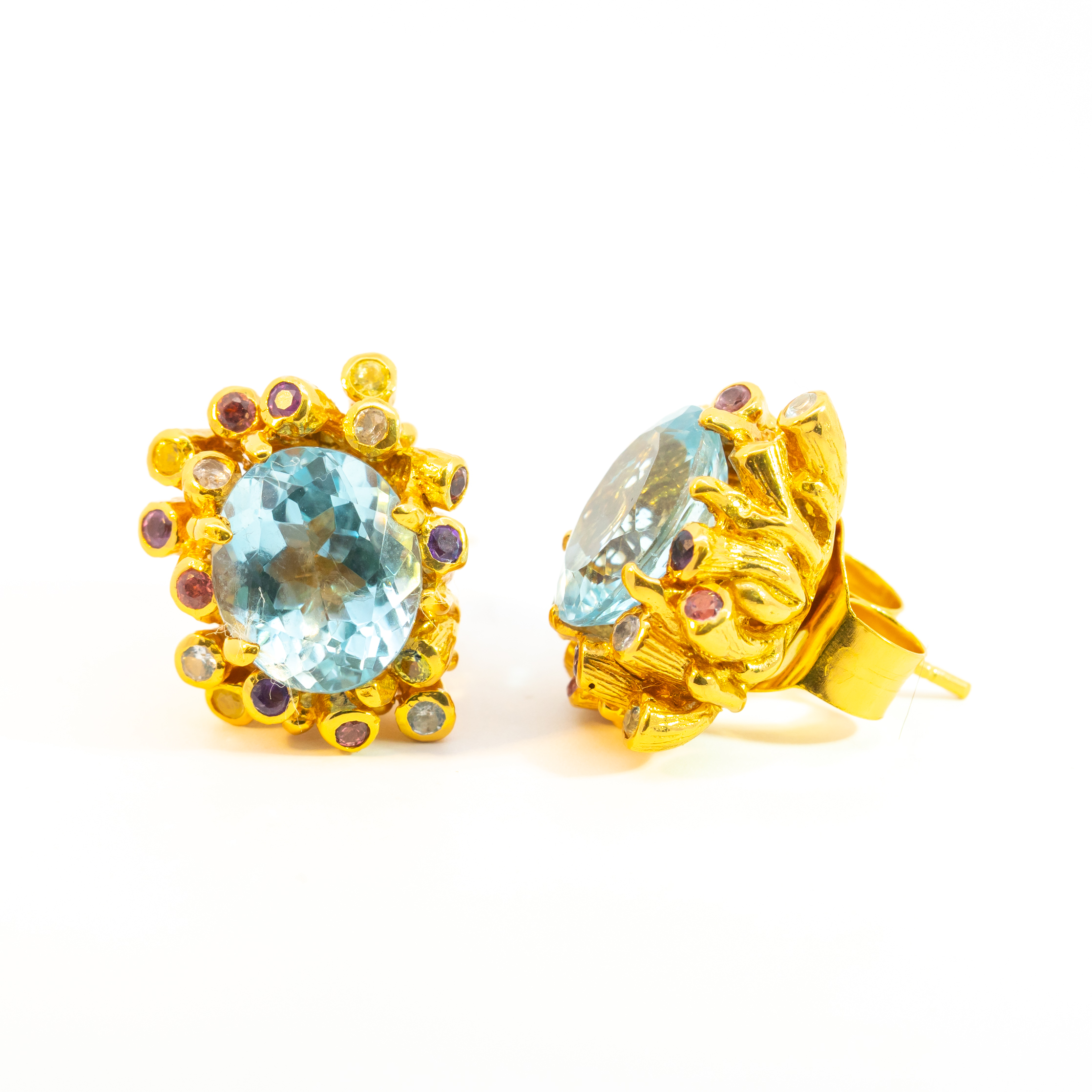 Sterling silver jewelry with 22k gold plated, natural stone and enamel.