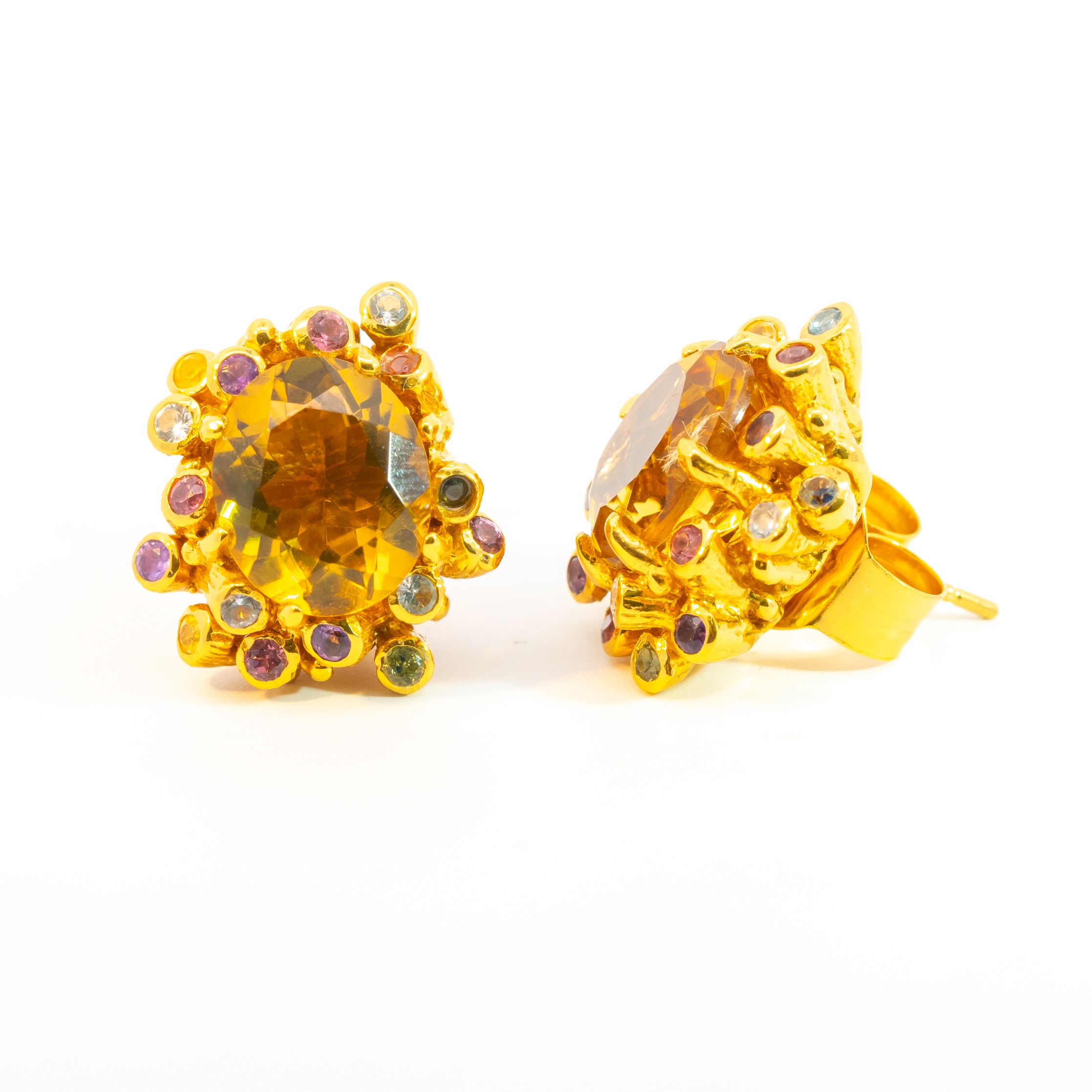 Sterling silver jewelry with 22k gold plated, natural stone and enamel.