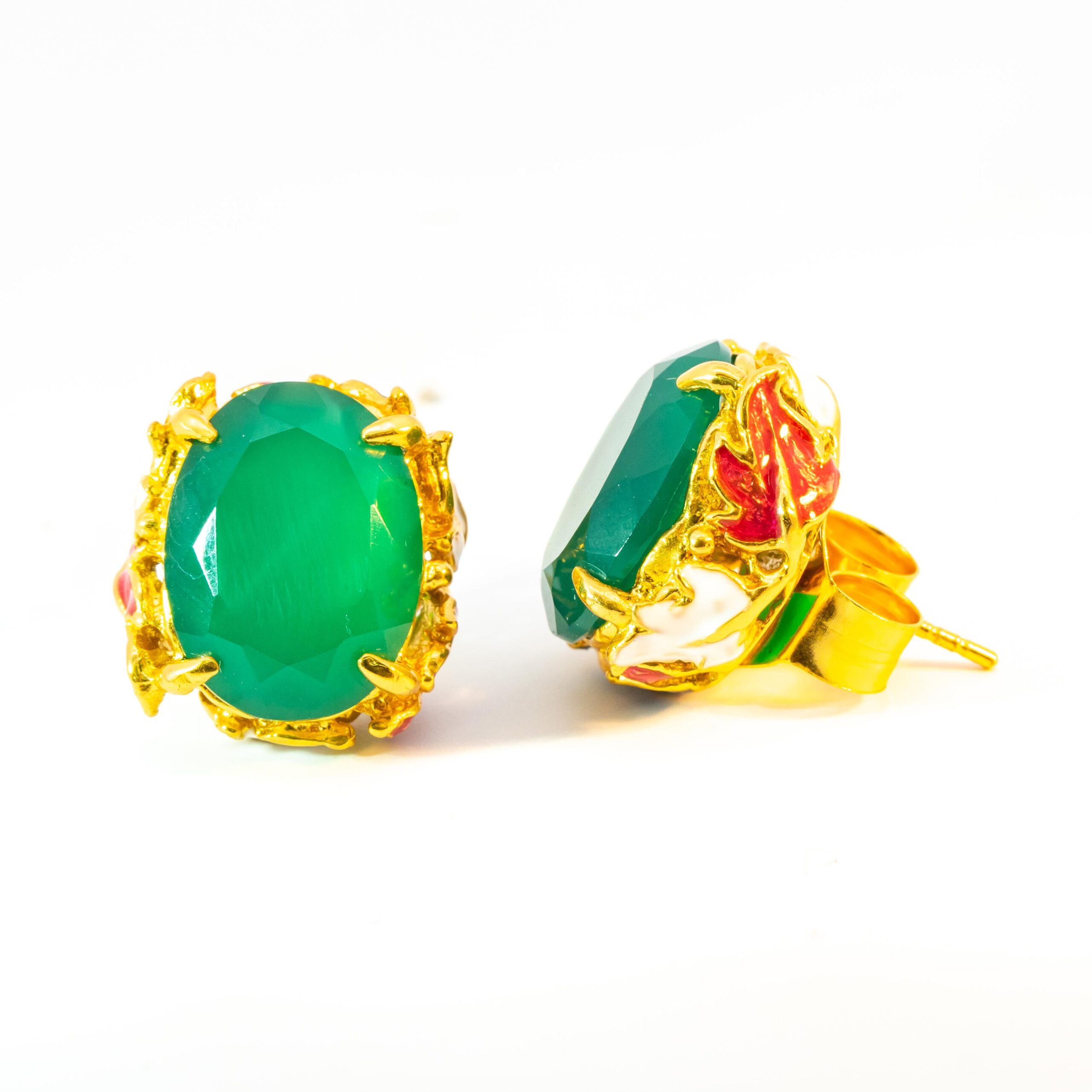 Sterling silver jewelry with 22k gold plated, natural stone and enamel.