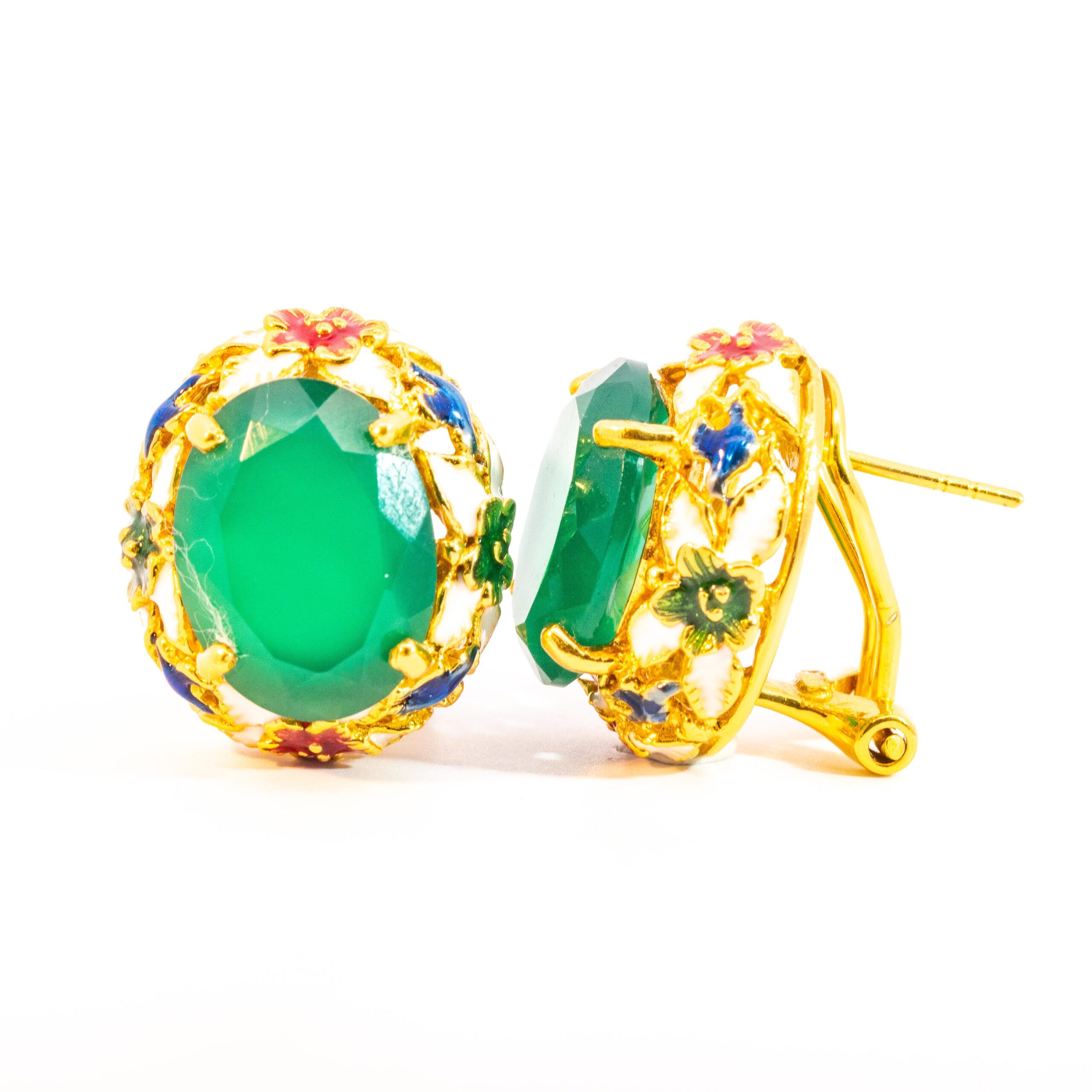 Sterling silver jewelry with 22k gold plated, natural stone and enamel.