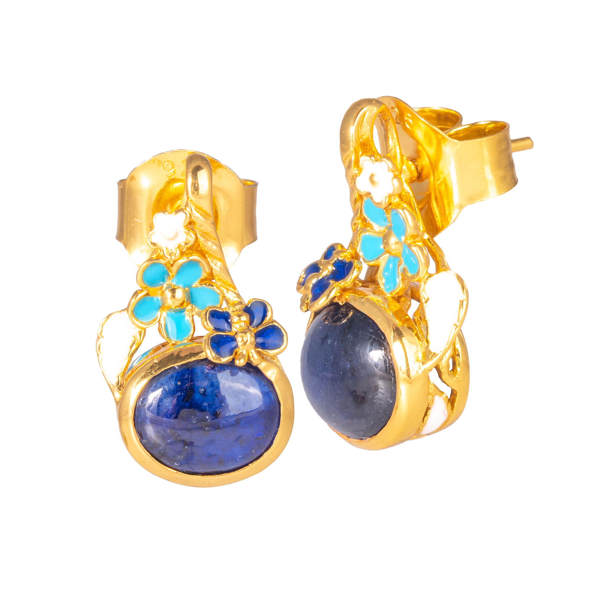 Sterling silver jewelry with 22k gold plated, natural stone and enamel.