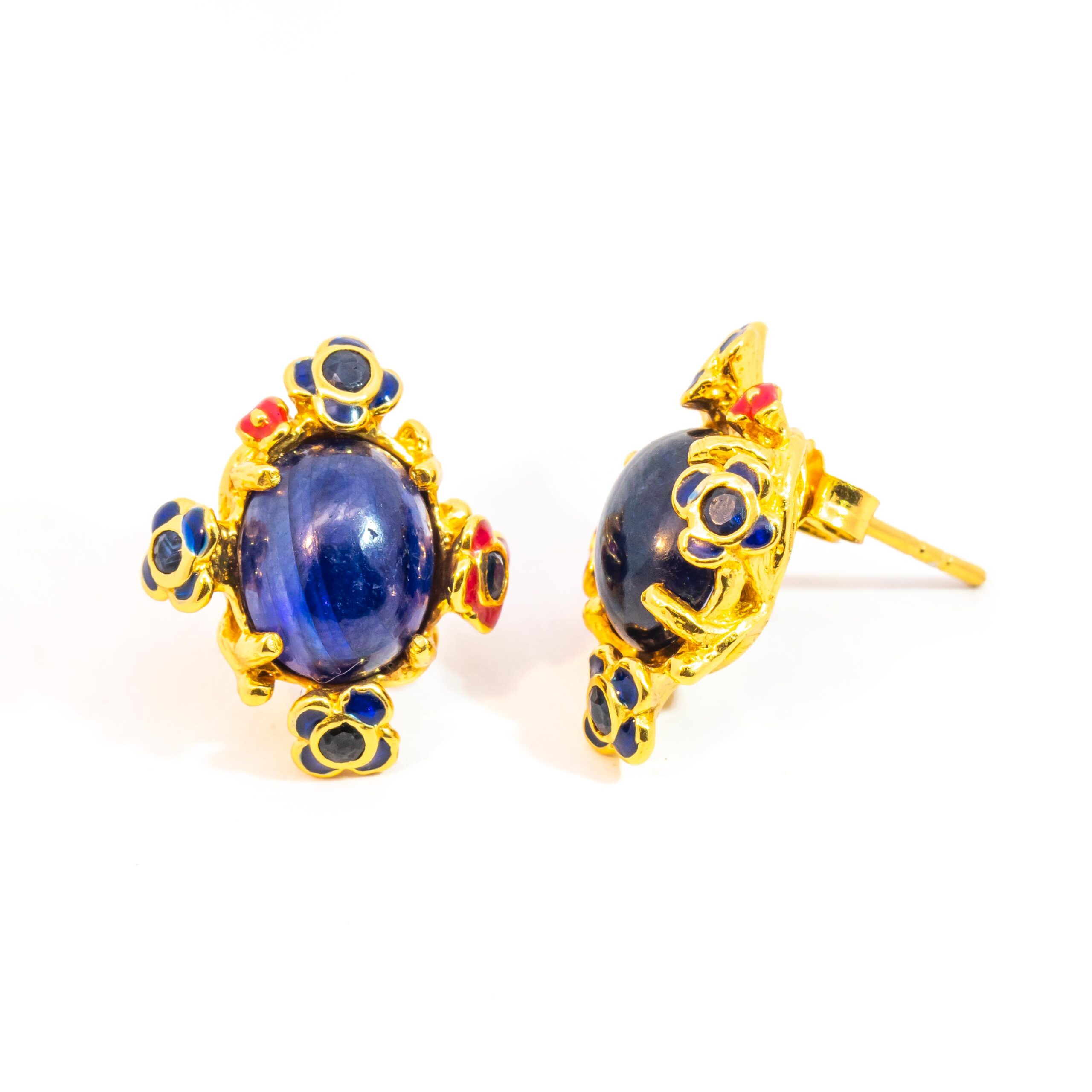 Sterling silver jewelry with 22k gold plated, natural stone and enamel.