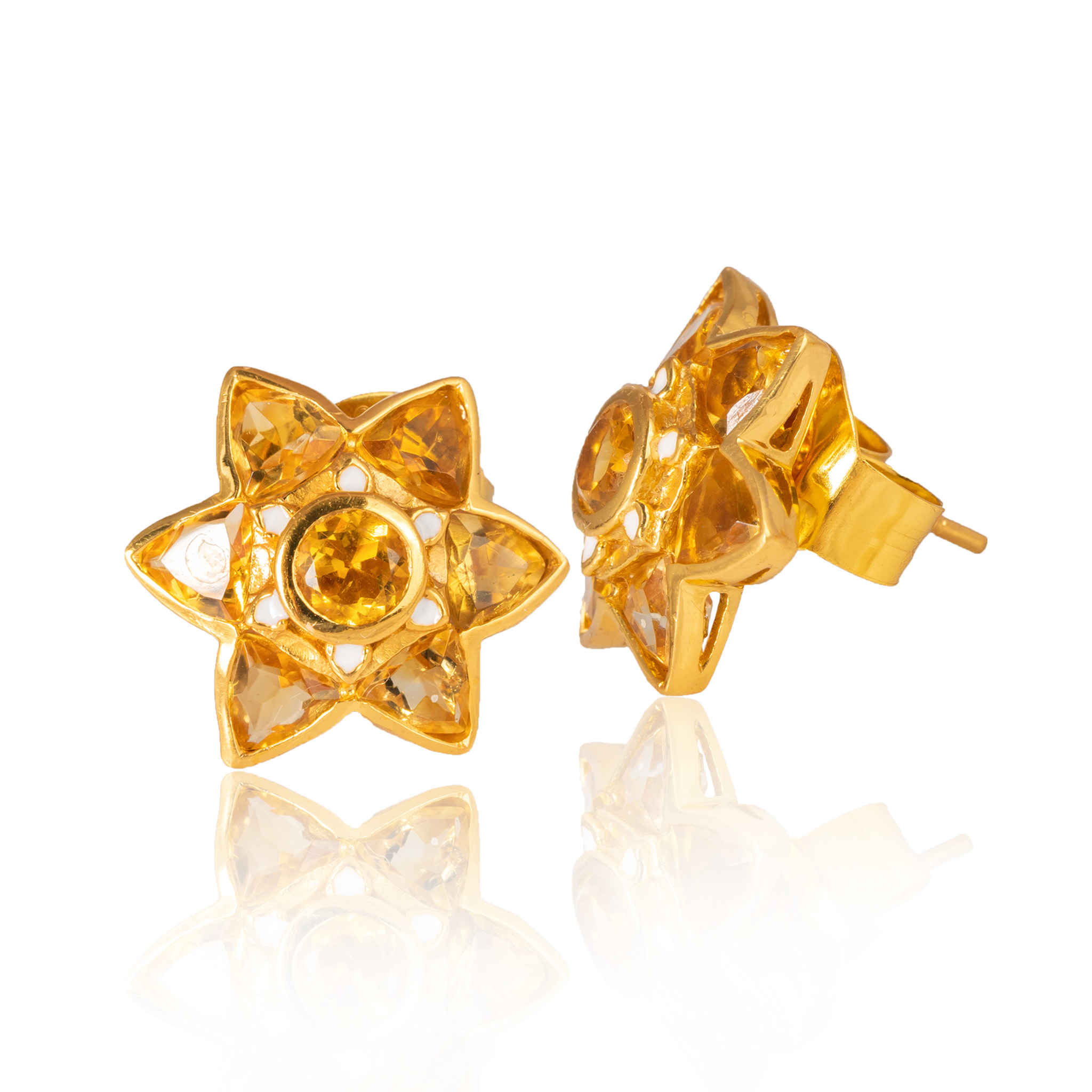 Sterling silver jewelry with 22k gold plated, natural stone and enamel.