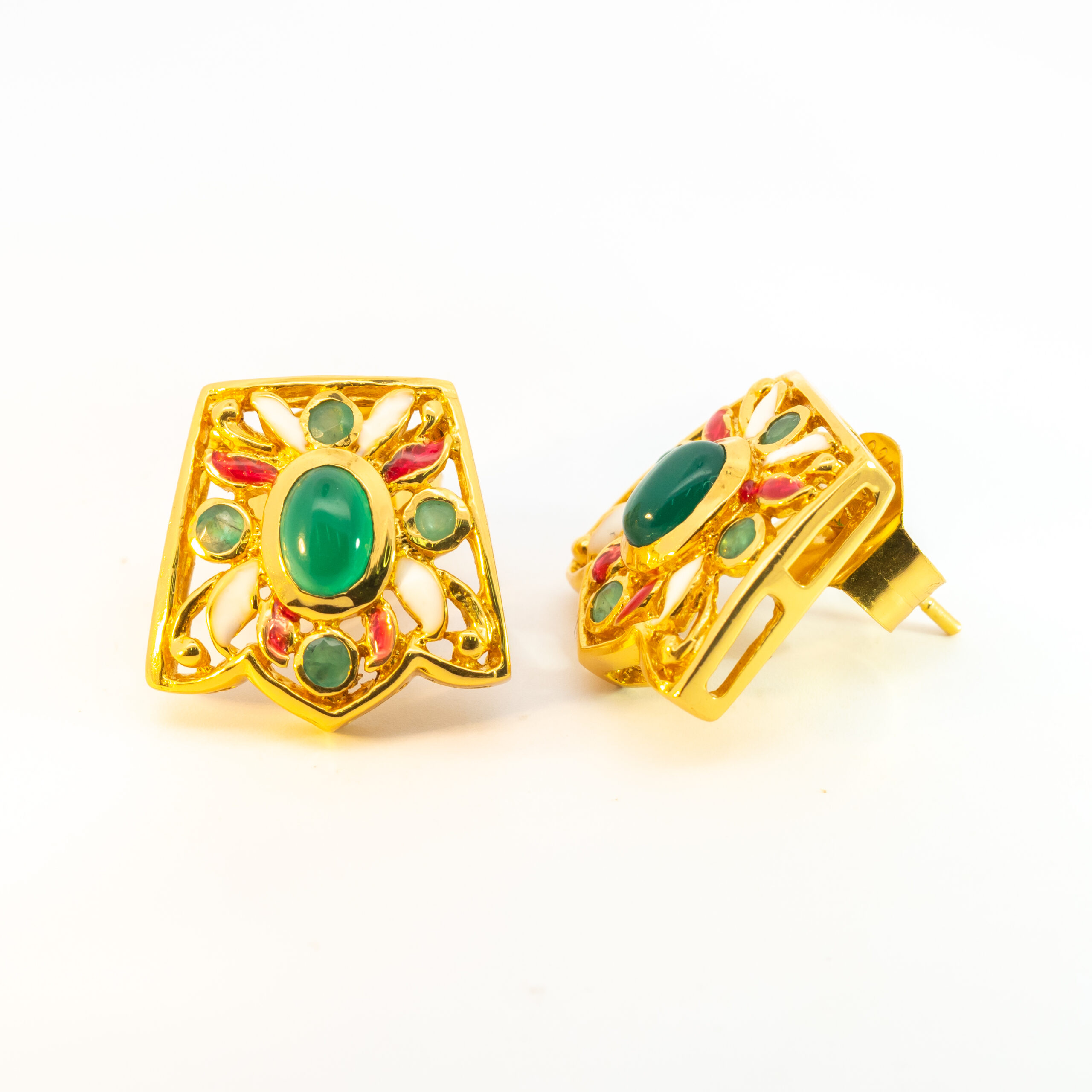 Sterling silver jewelry with 22k gold plated, natural stone and enamel.