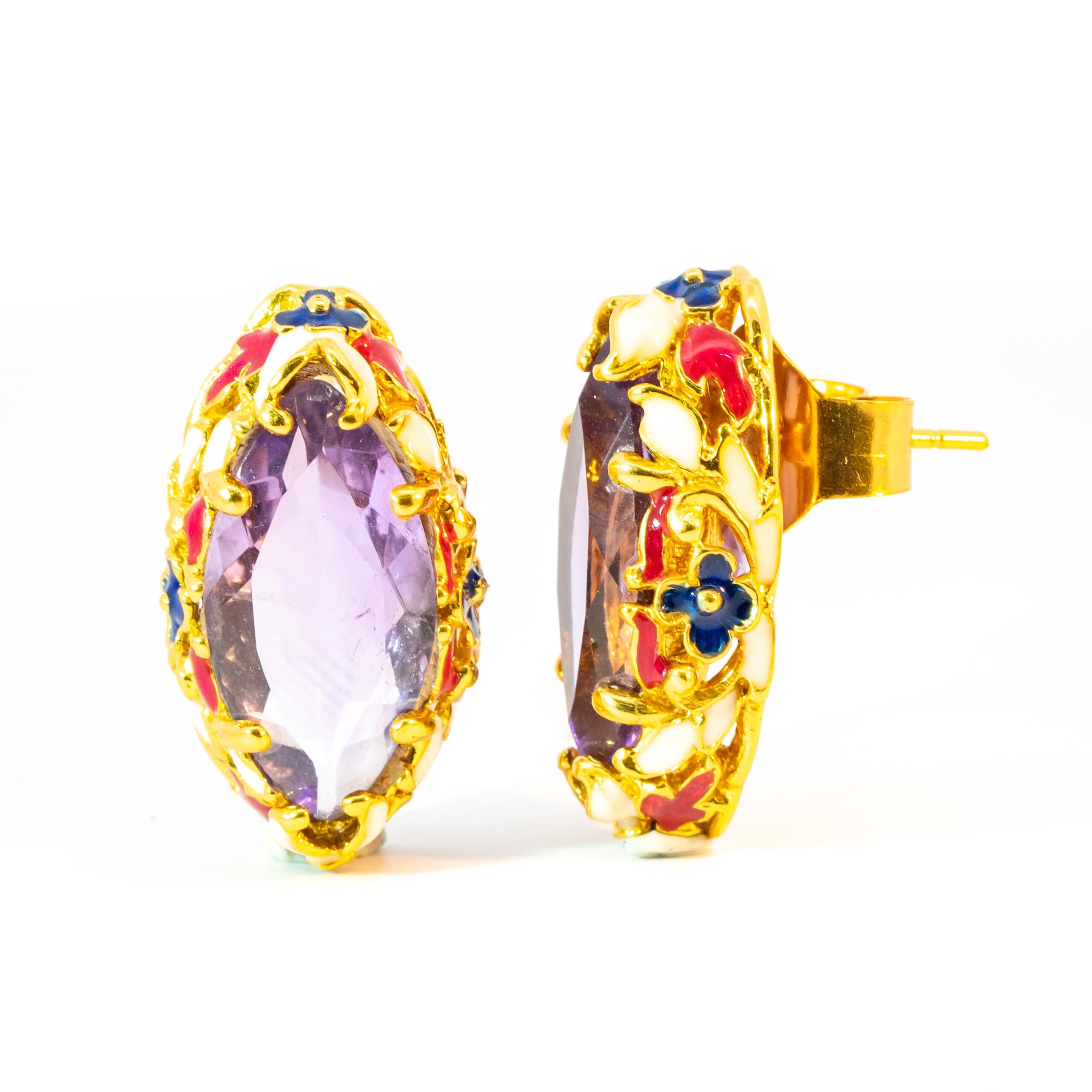 Sterling silver jewelry with 22k gold plated, natural stone and enamel.
