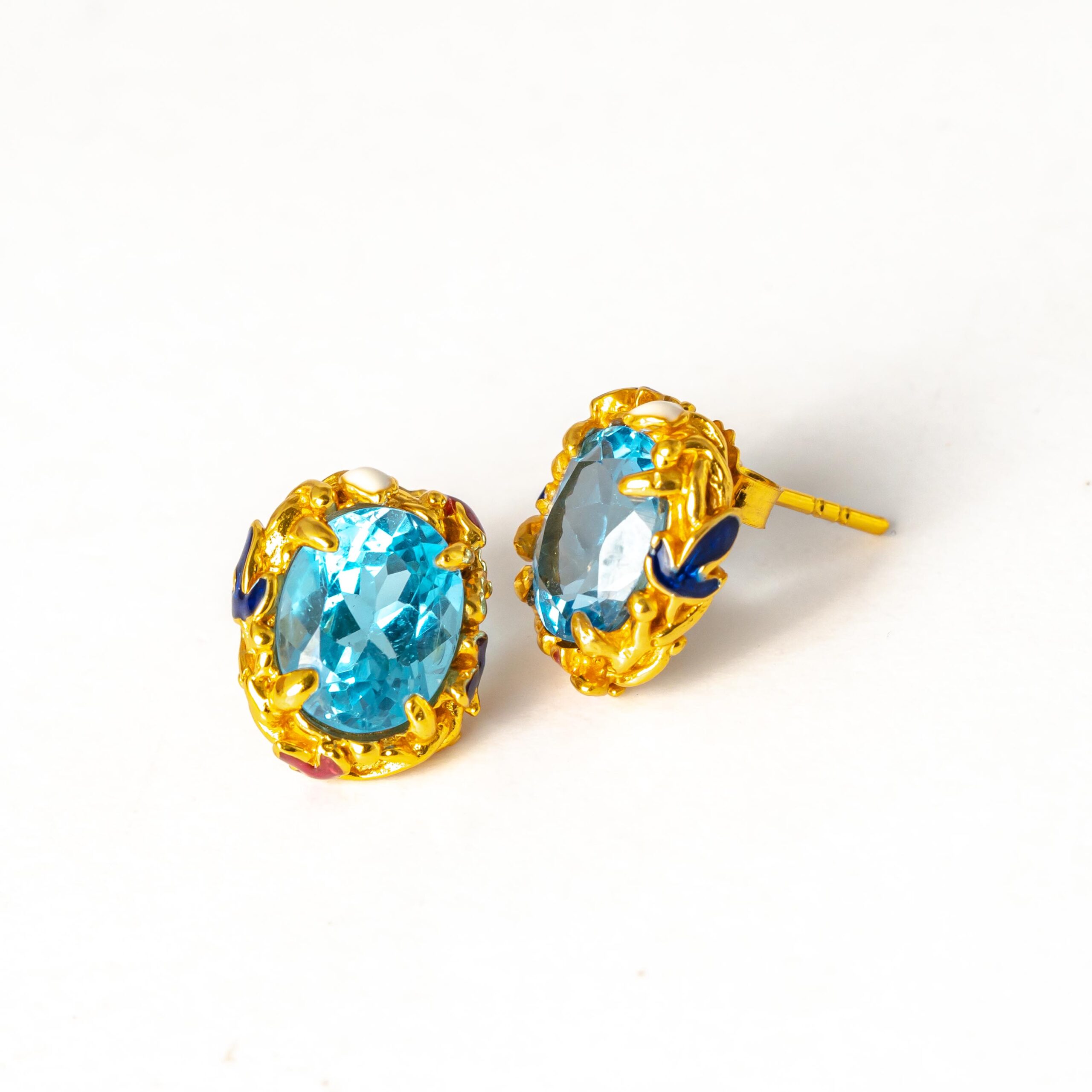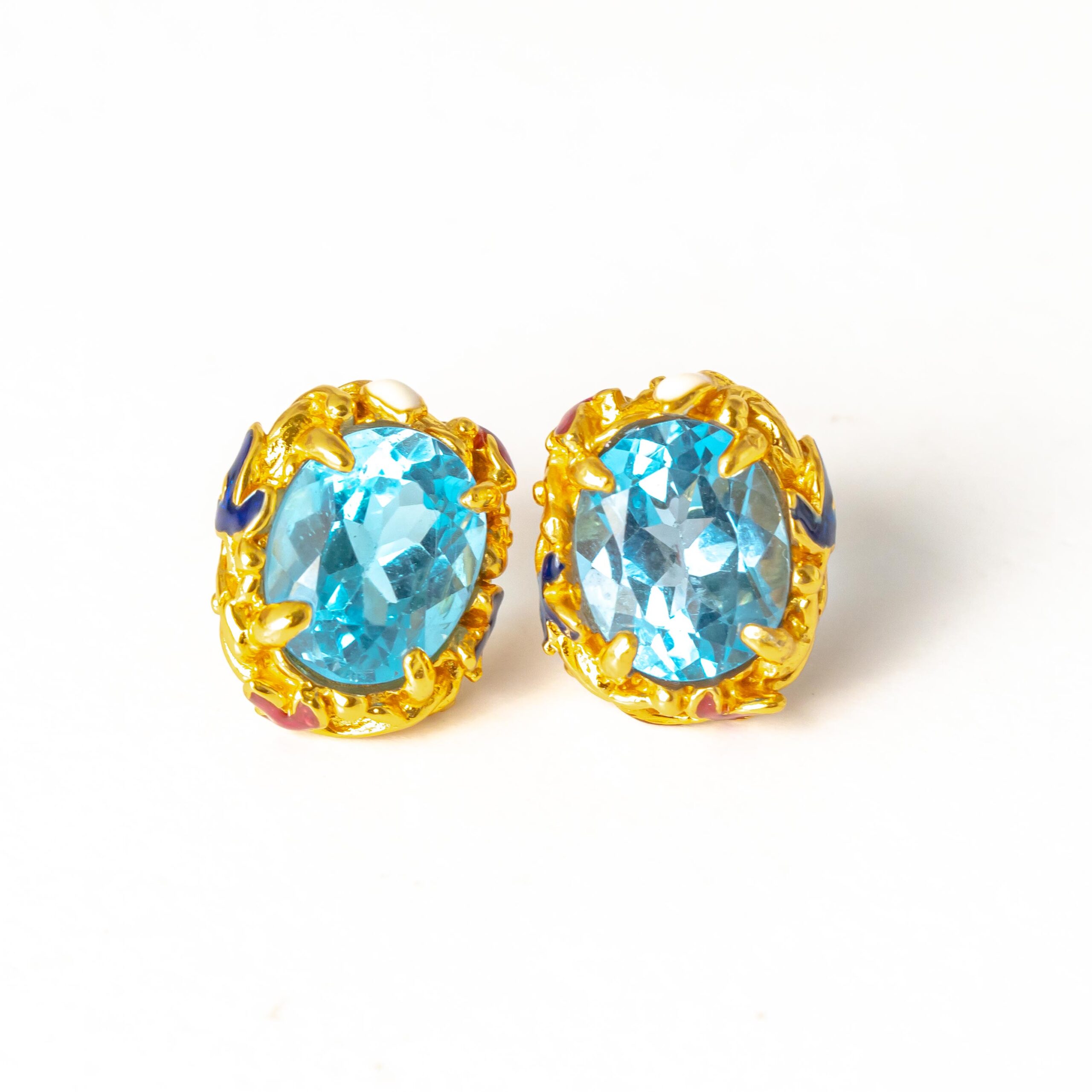 Sterling silver jewelry with 22k gold plated, natural stone and enamel.