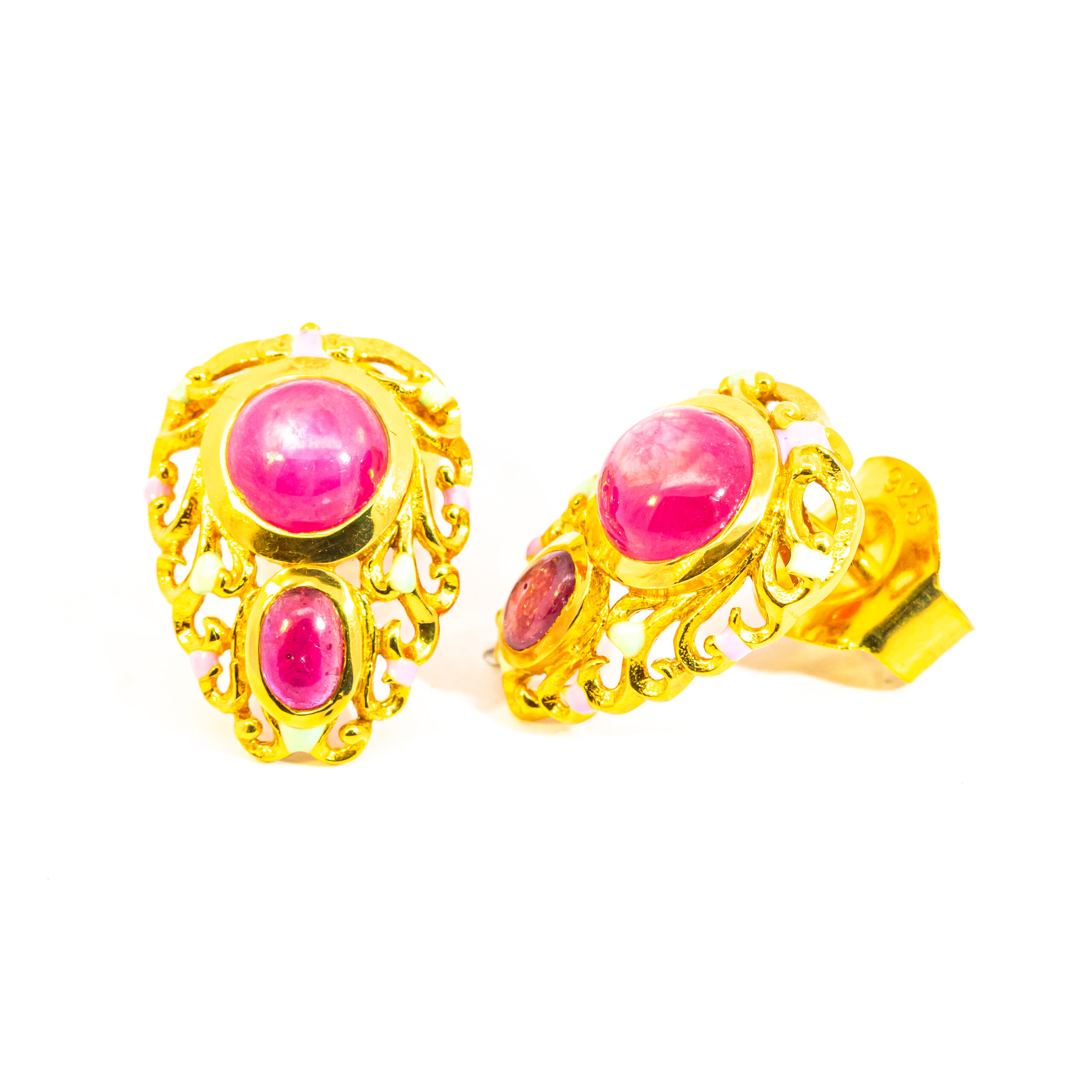 Sterling silver jewelry with 22k gold plated, natural stone and enamel.