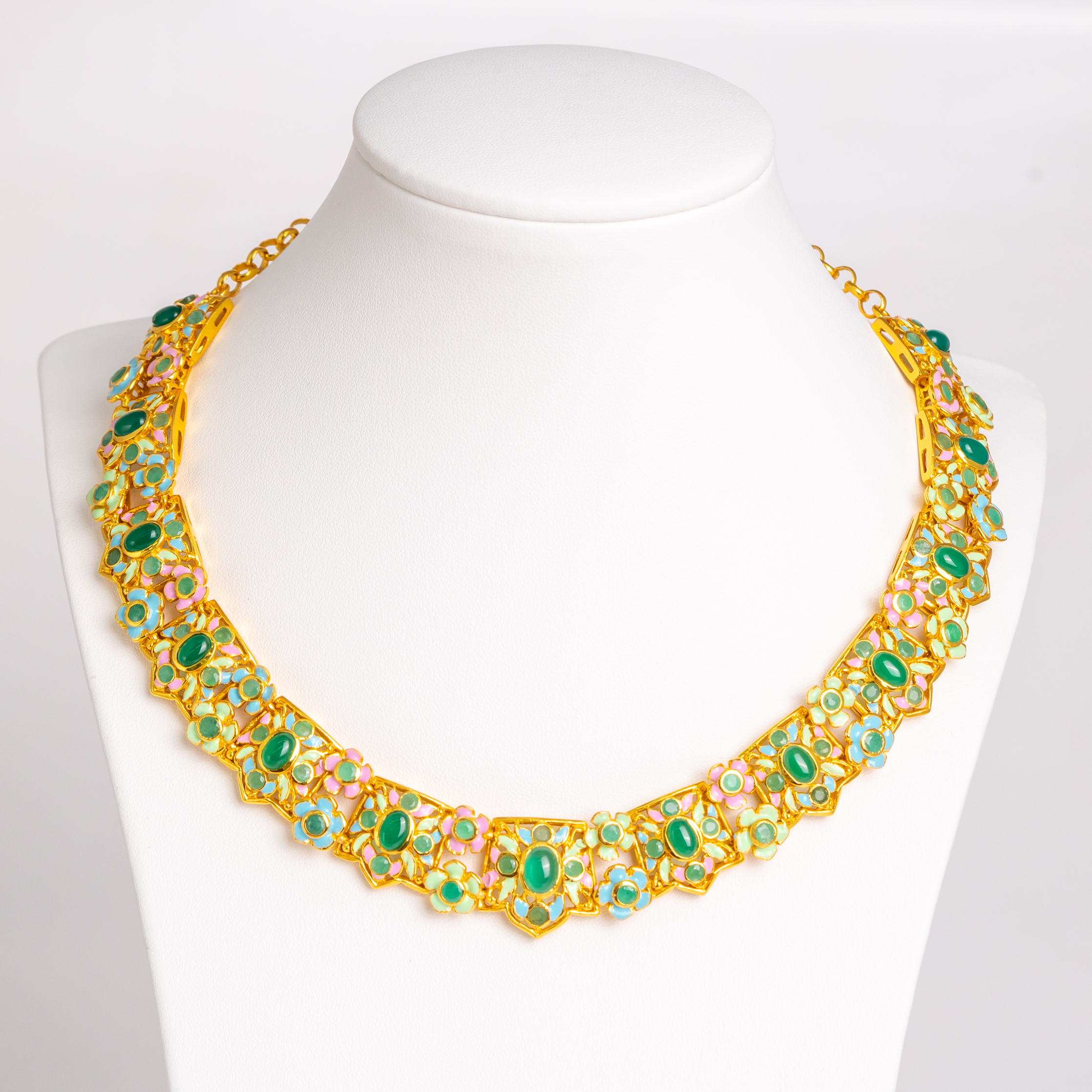 Sterling silver jewelry with 22k gold plated, natural stone and enamel.