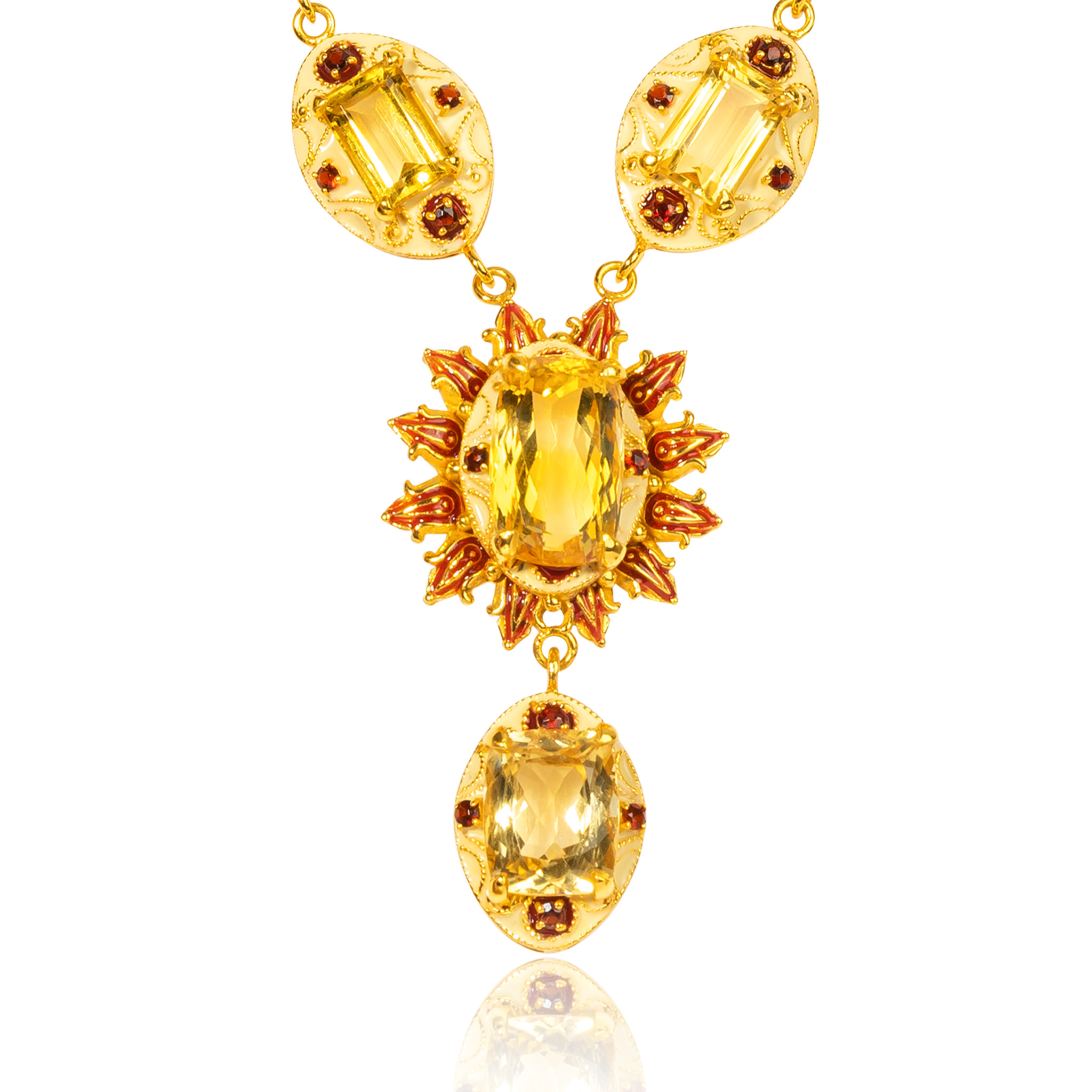 Sterling silver jewelry with 22k gold plated, natural stone and enamel.