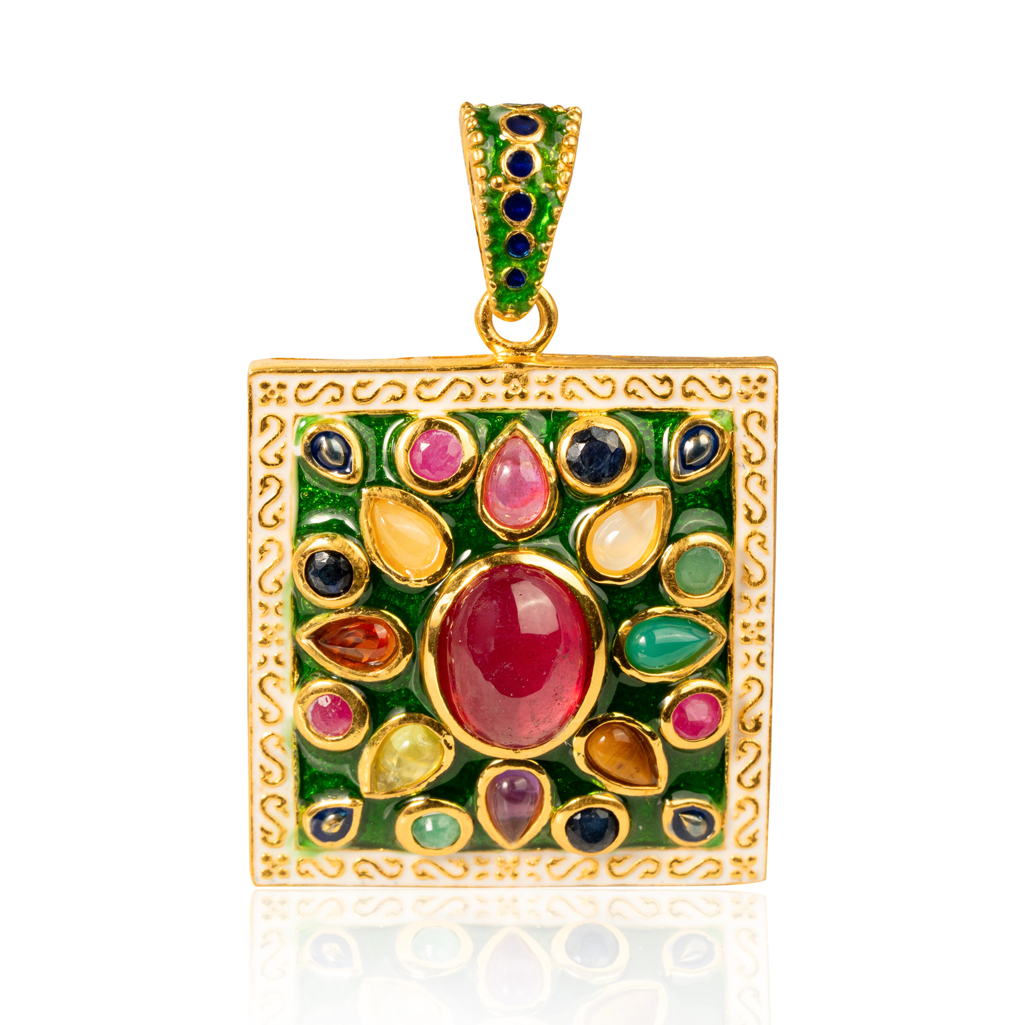 Sterling silver jewelry with 22k gold plated, natural stone and enamel.