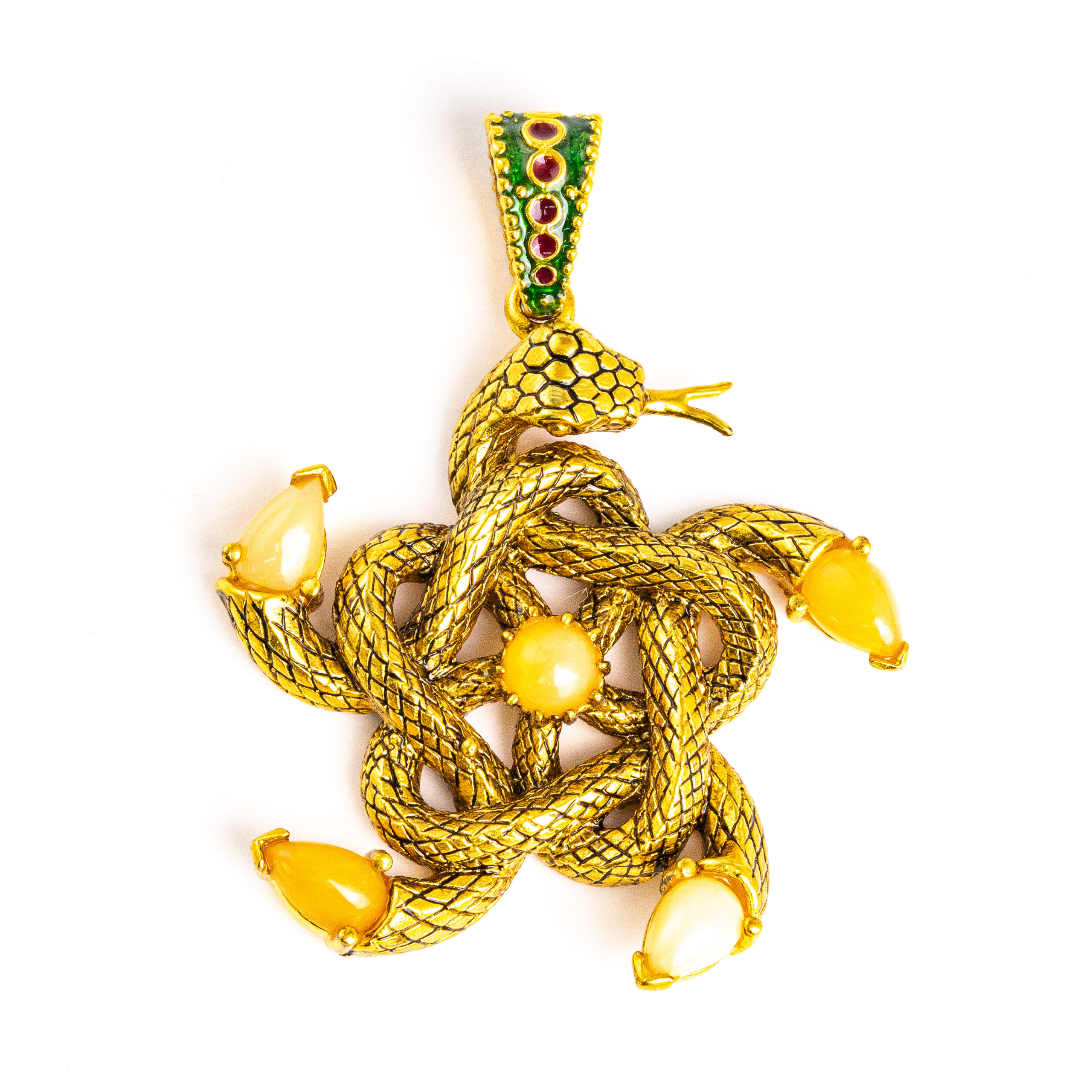 Sterling silver jewelry with 22k gold plated, natural stone and enamel.