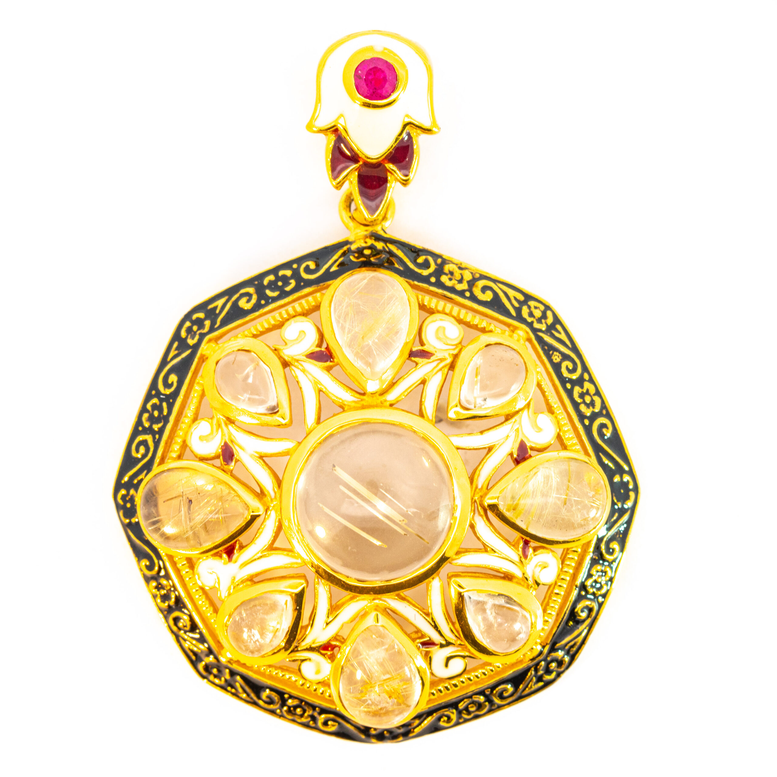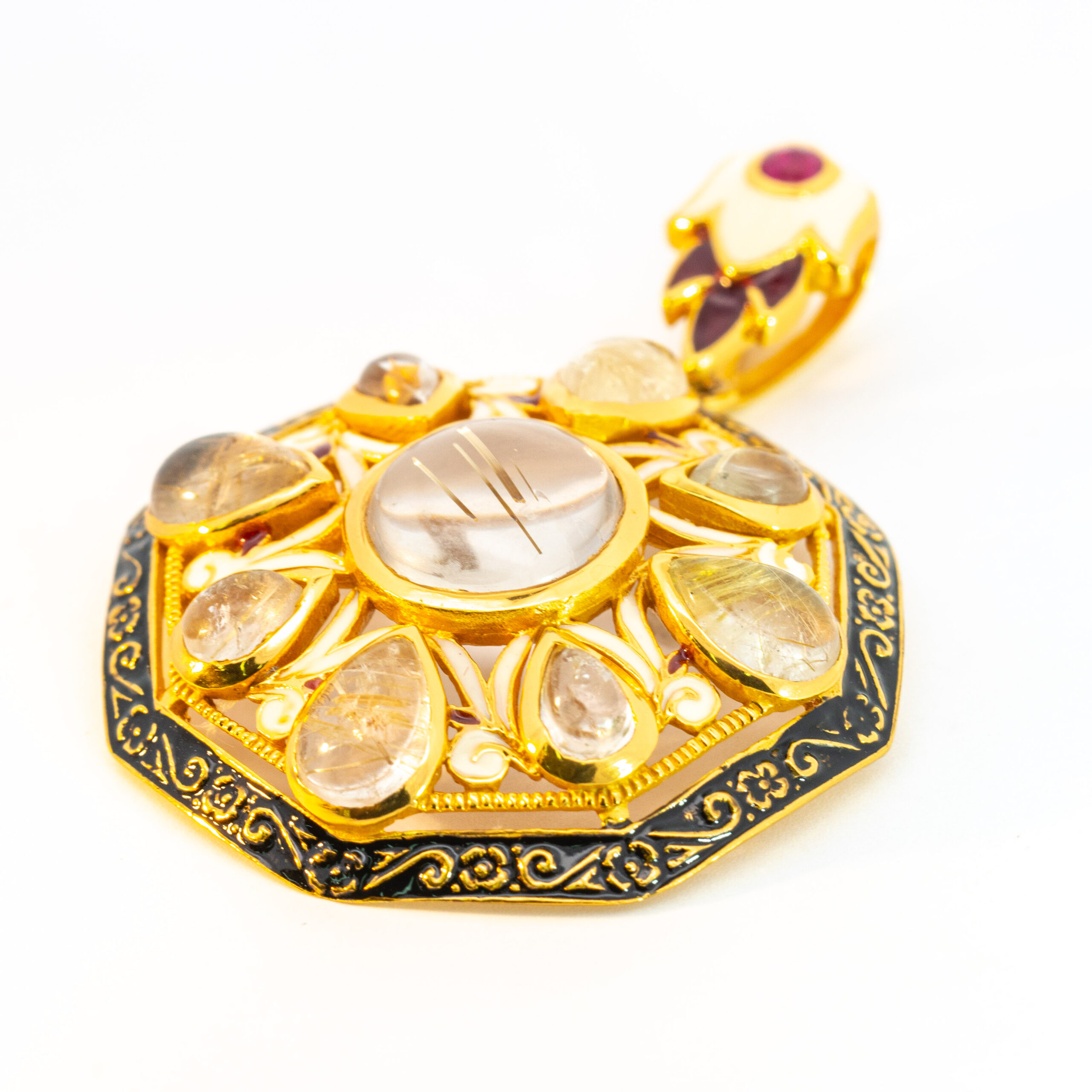 Sterling silver jewelry with 22k gold plated, natural stone and enamel.