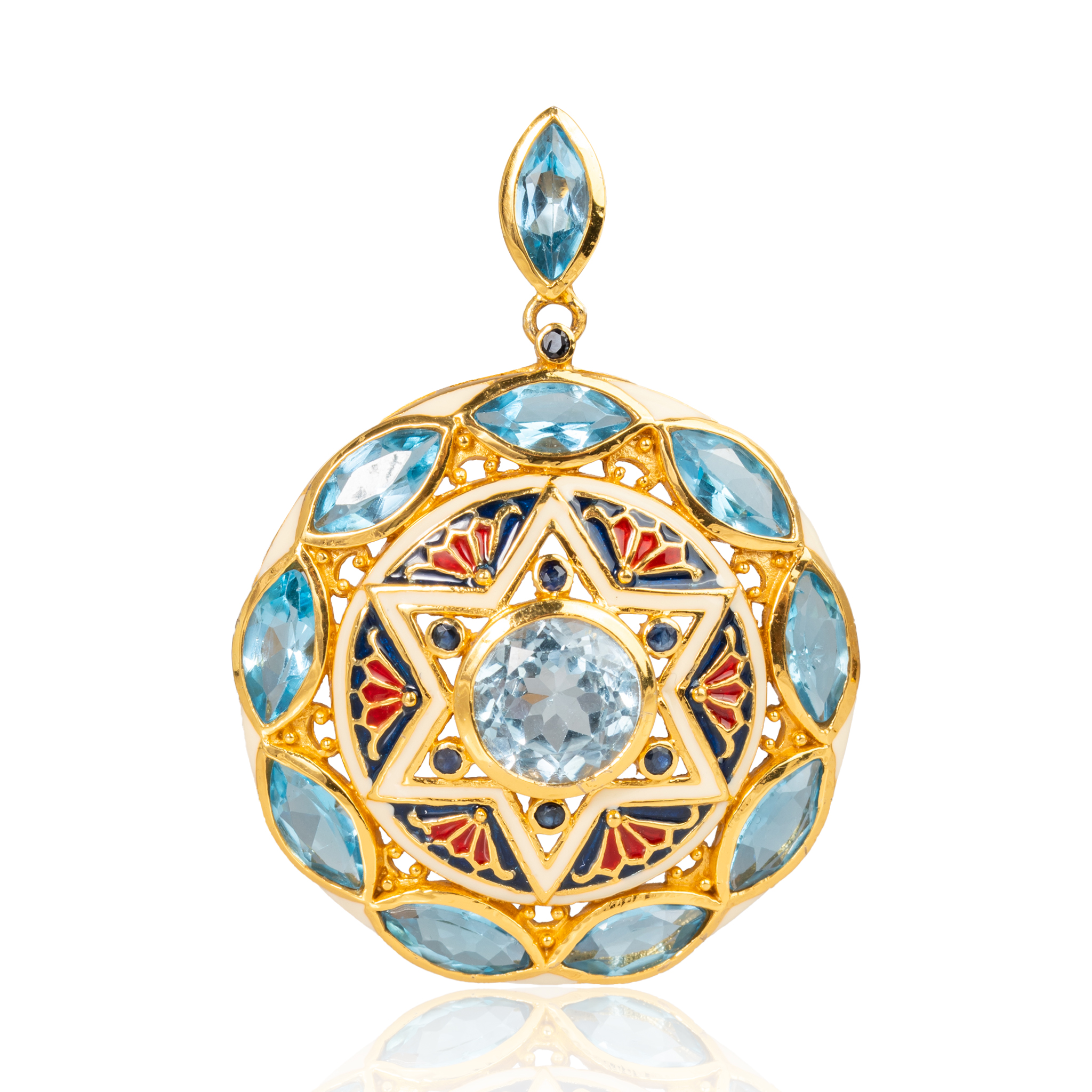 Sterling silver jewelry with 22k gold plated, natural stone and enamel.