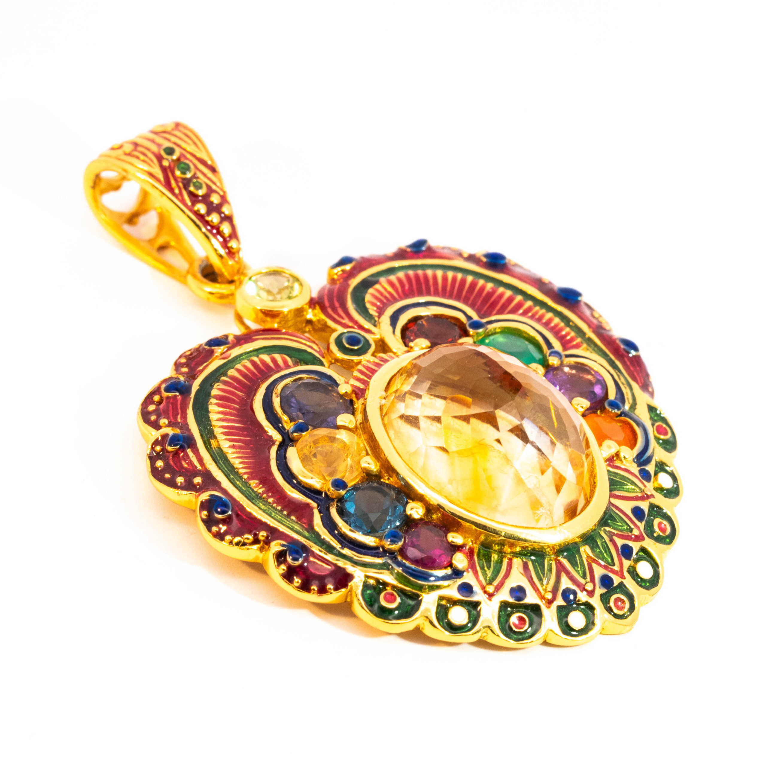 Sterling silver jewelry with 22k gold plated, natural stone and enamel.