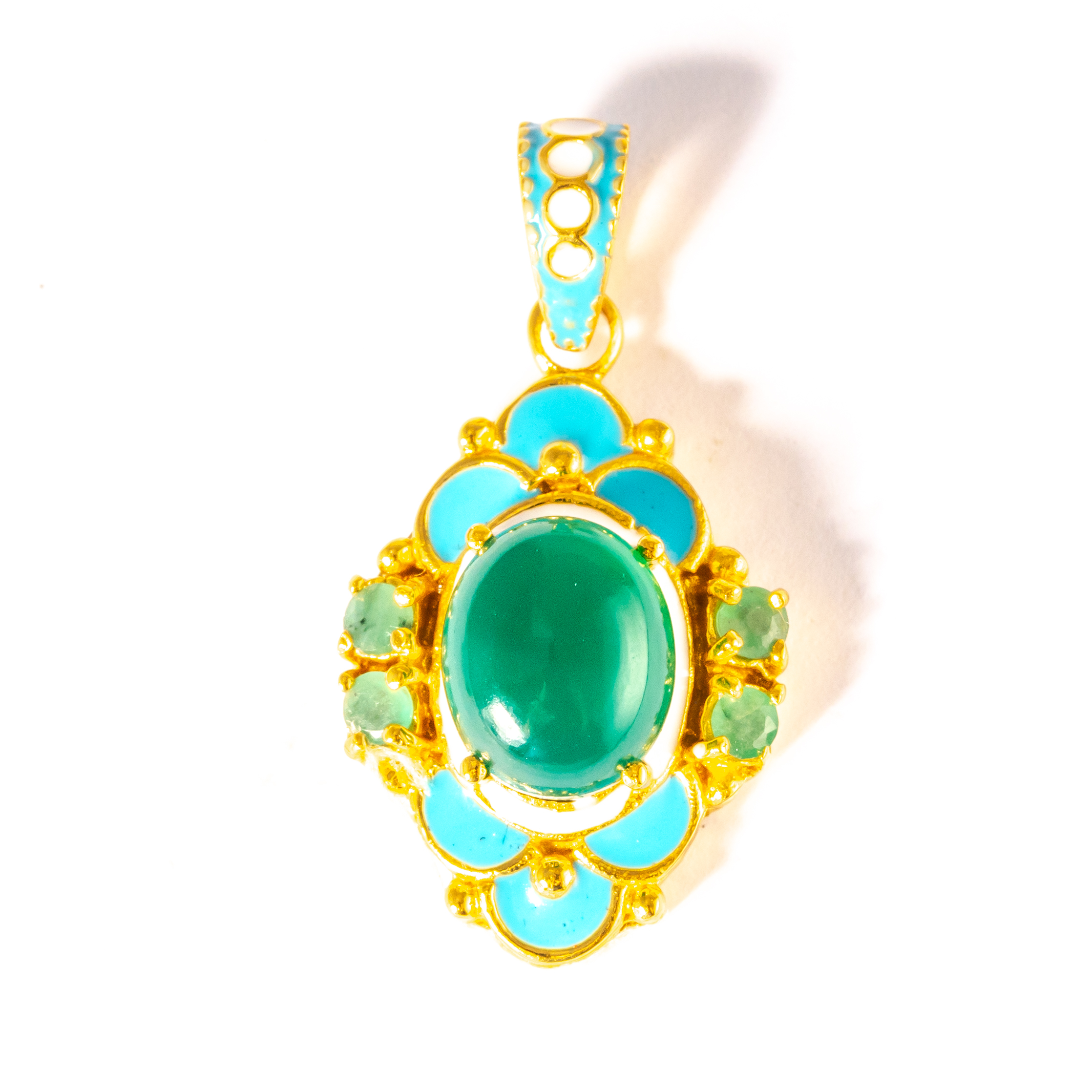 Sterling silver jewelry with 22k gold plated, natural stone and enamel.