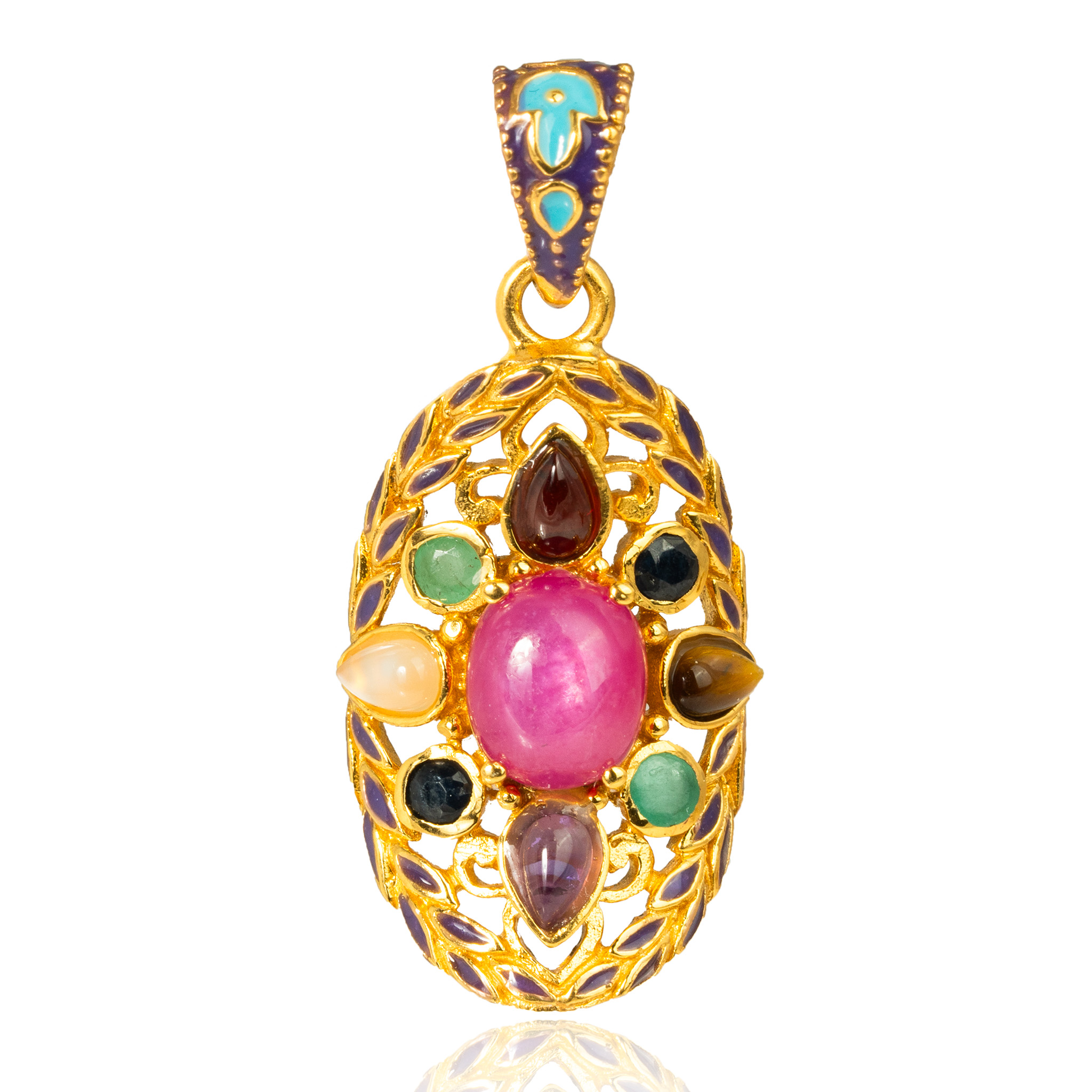 Sterling silver jewelry with 22k gold plated, natural stone and enamel.