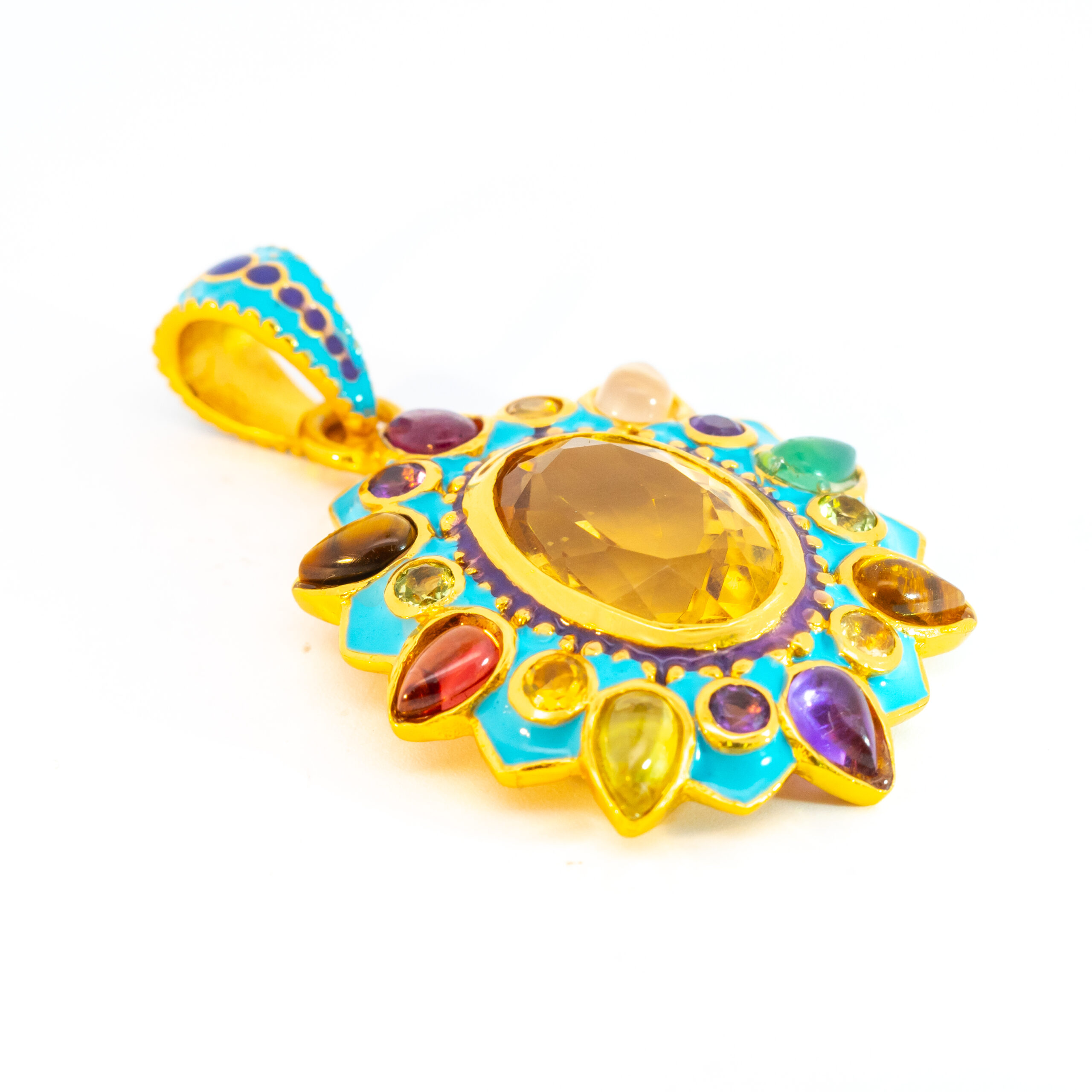 Sterling silver jewelry with 22k gold plated, natural stone and enamel.