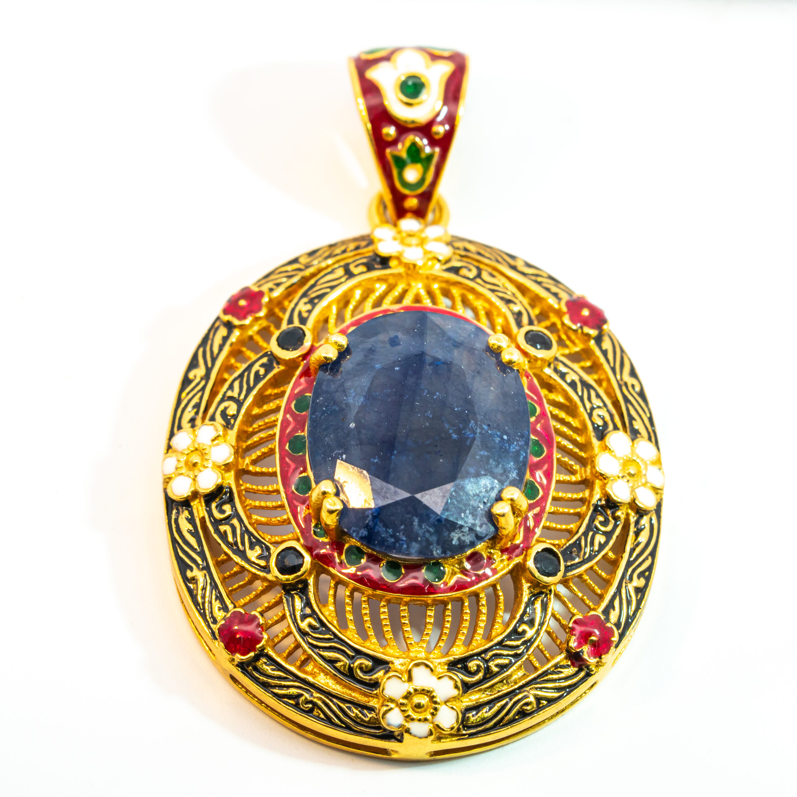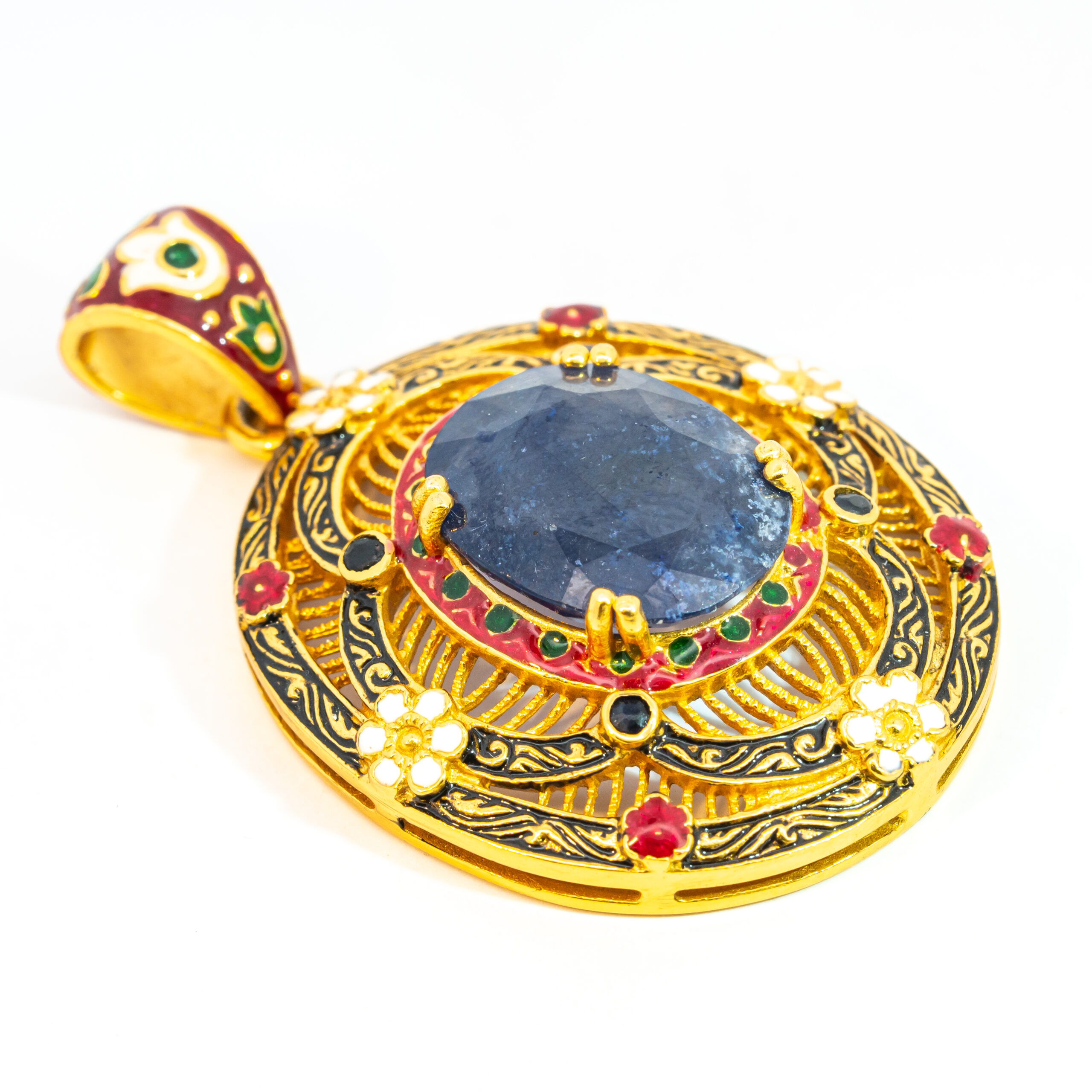 Sterling silver jewelry with 22k gold plated, natural stone and enamel.