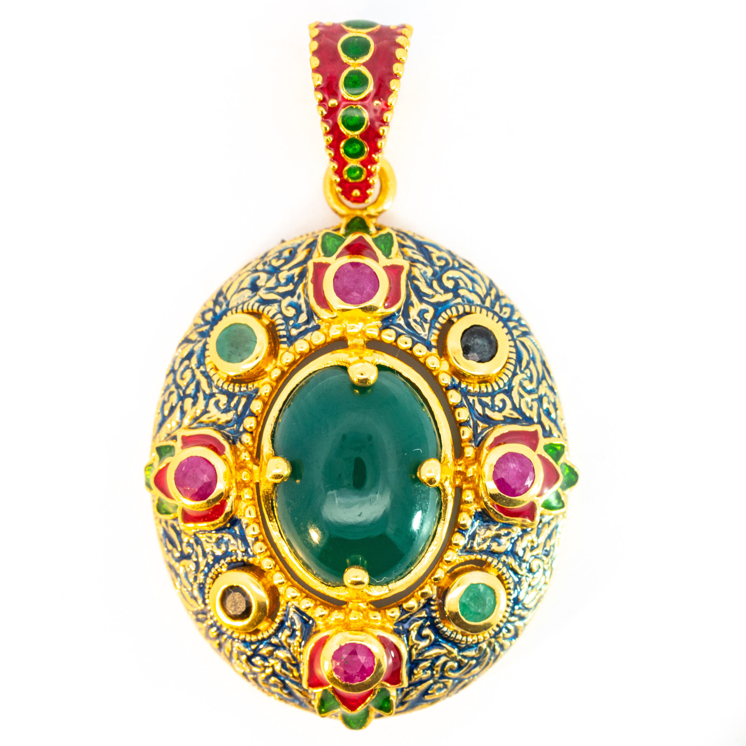 Sterling silver jewelry with 22k gold plated, natural stone and enamel.