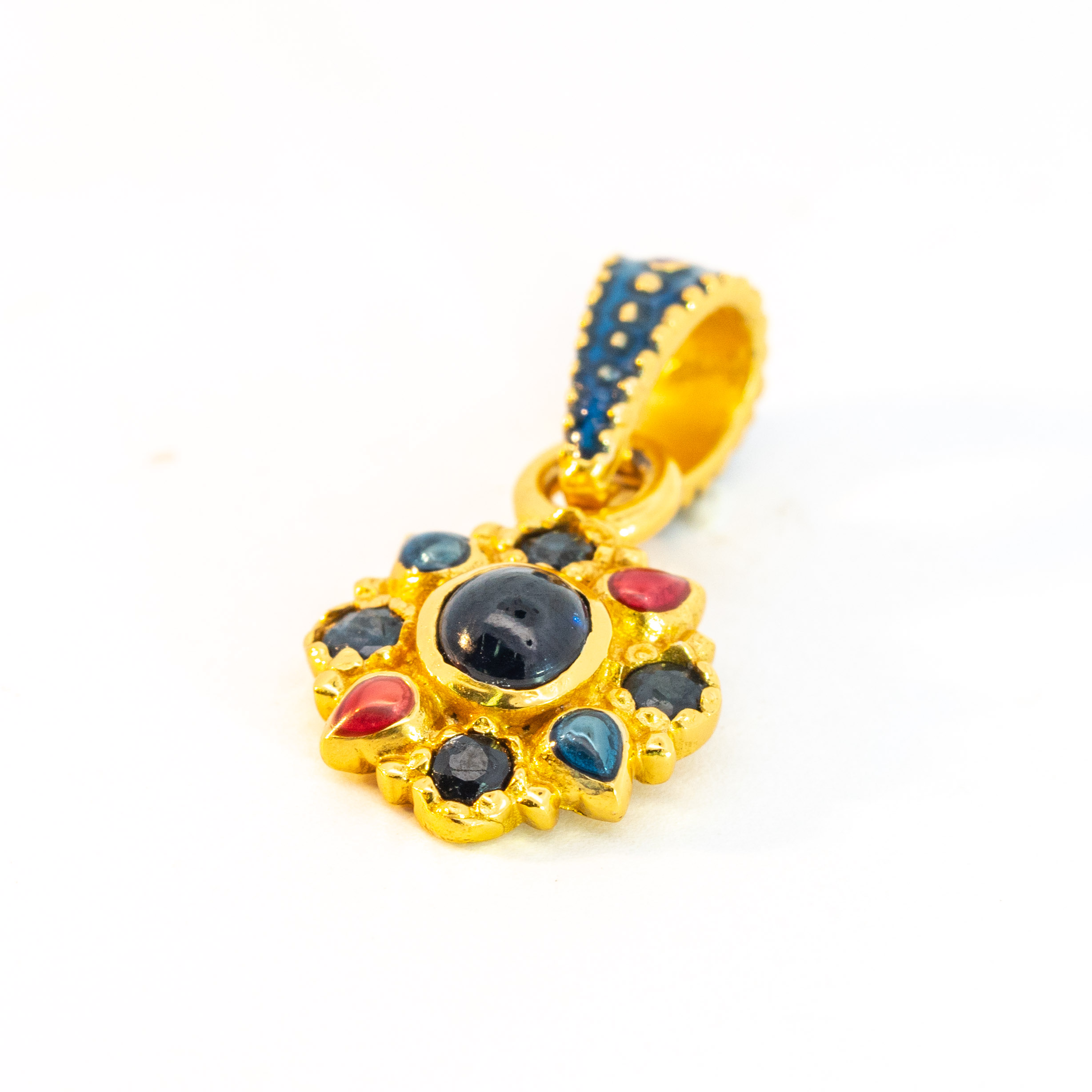 Sterling silver jewelry with 22k gold plated, natural stone and enamel.