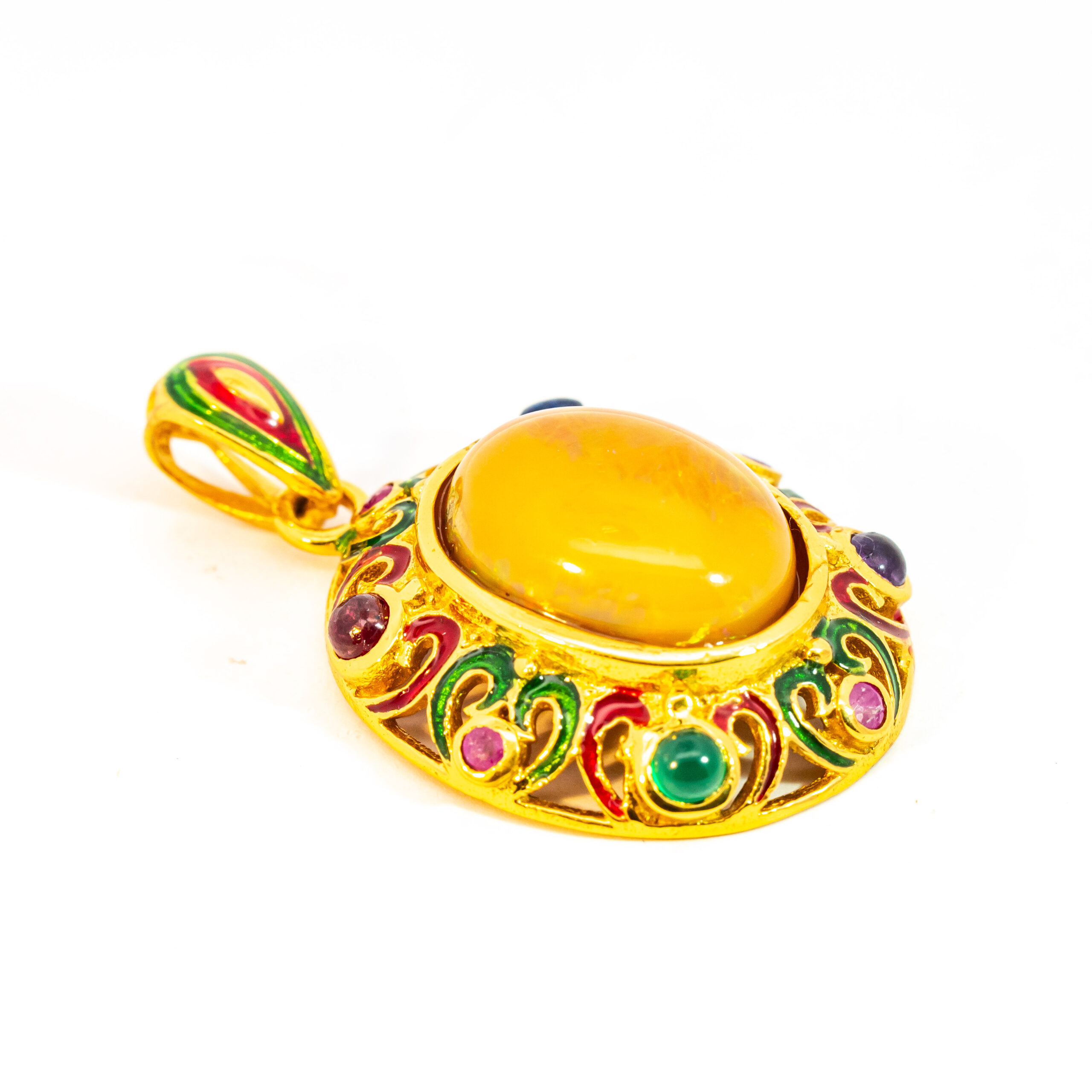 Sterling silver jewelry with 22k gold plated, natural stone and enamel.