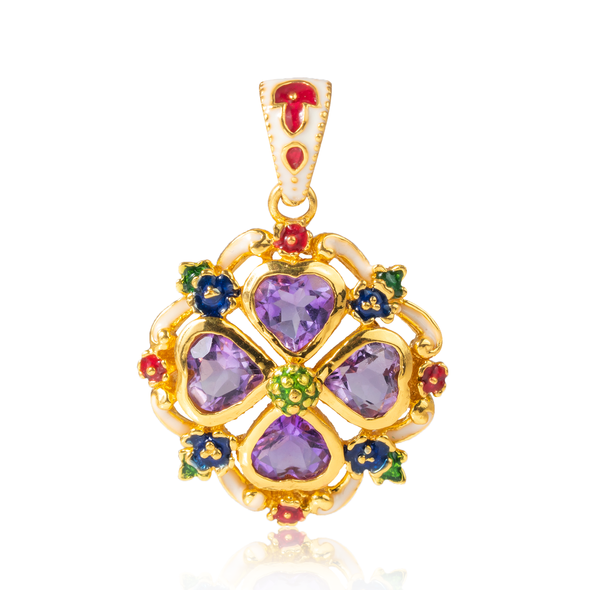 Sterling silver jewelry with 22k gold plated, natural stone and enamel.