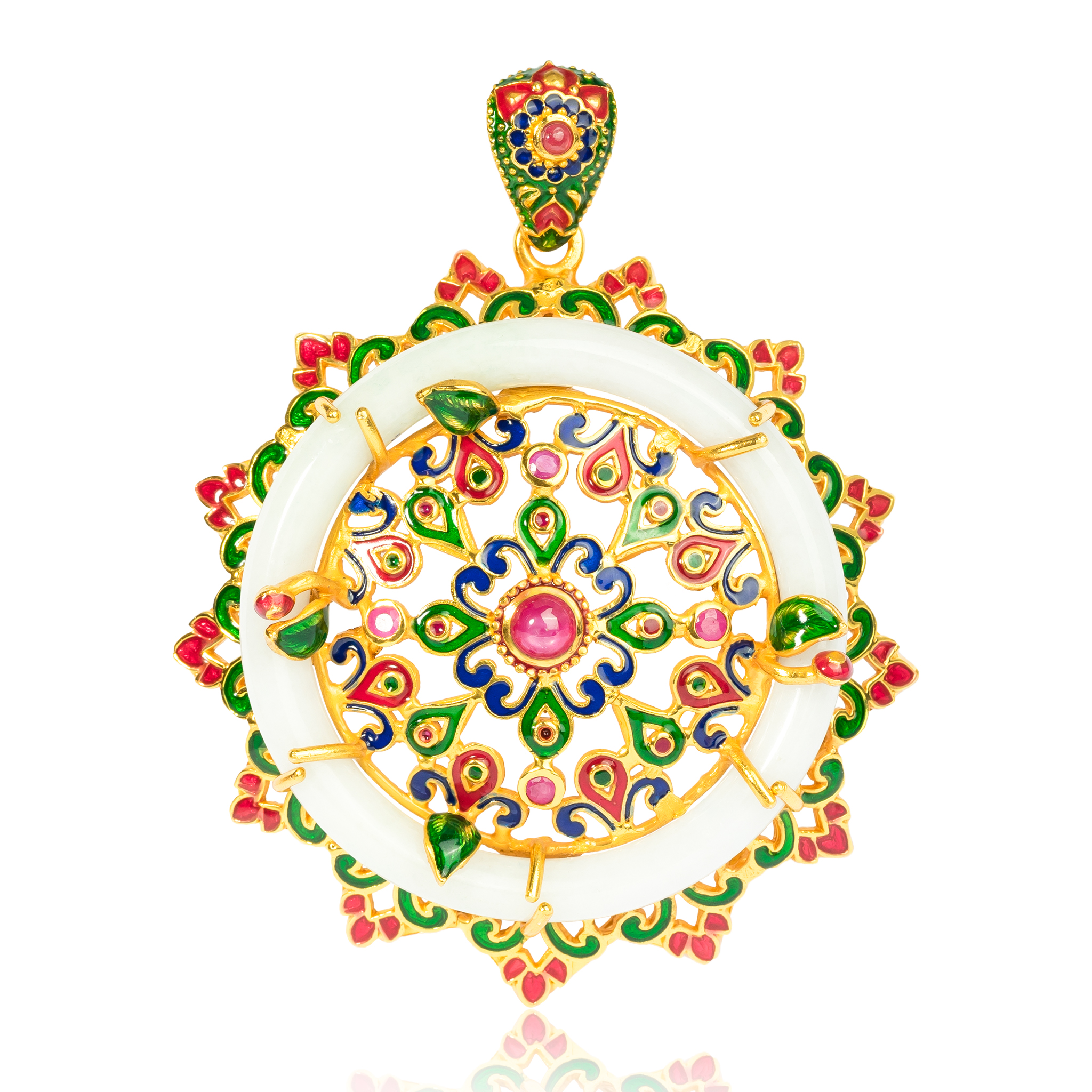 Sterling silver jewelry with 22k gold plated, natural stone and enamel.
