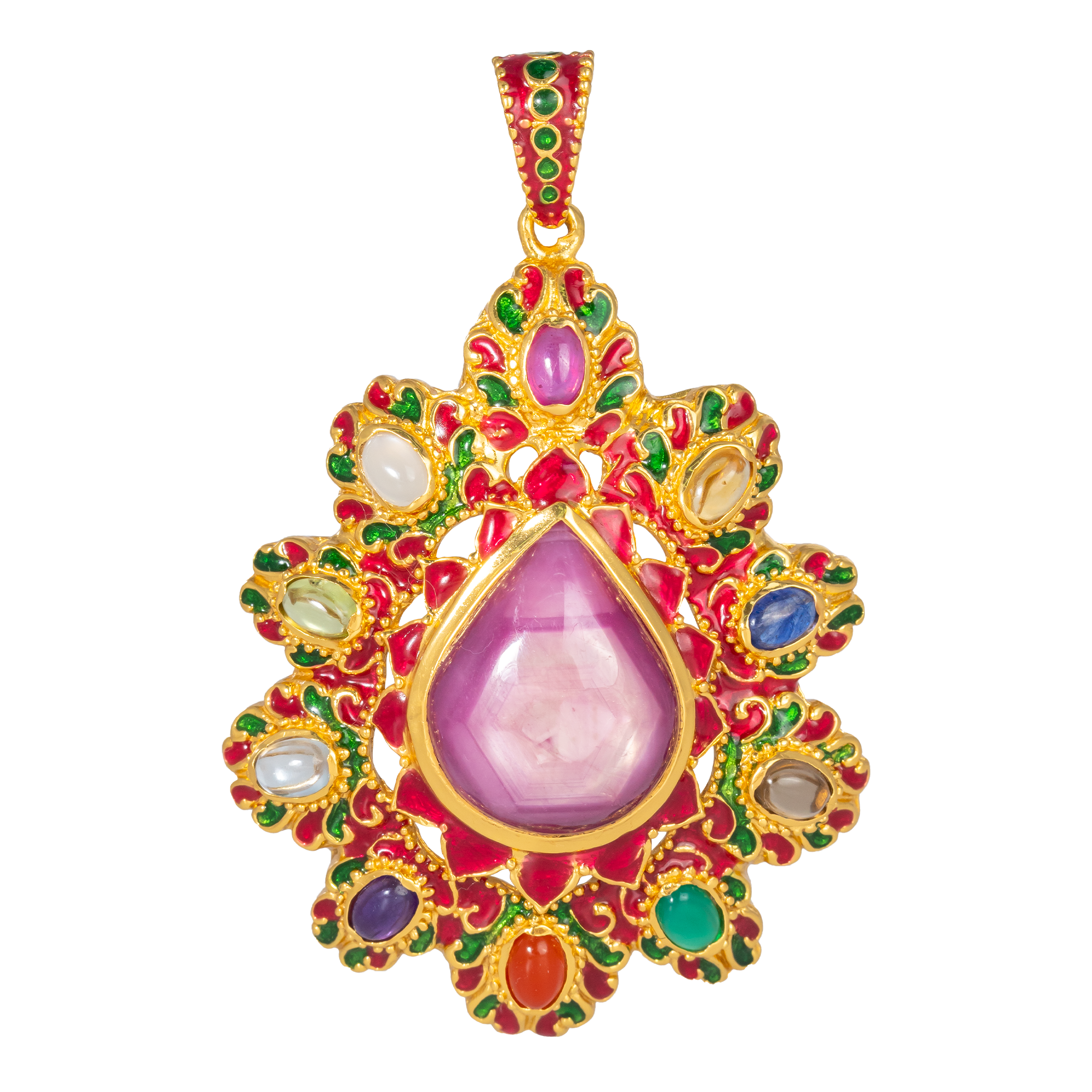Sterling silver jewelry with 22k gold plated, natural stone and enamel.