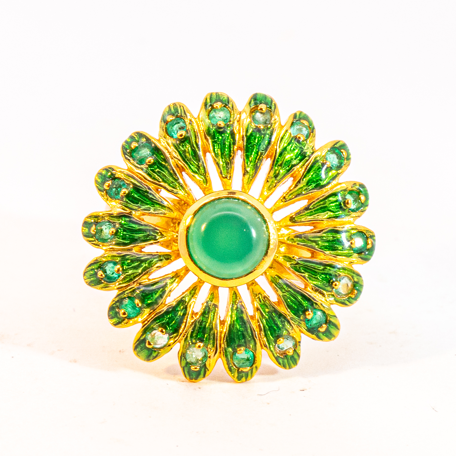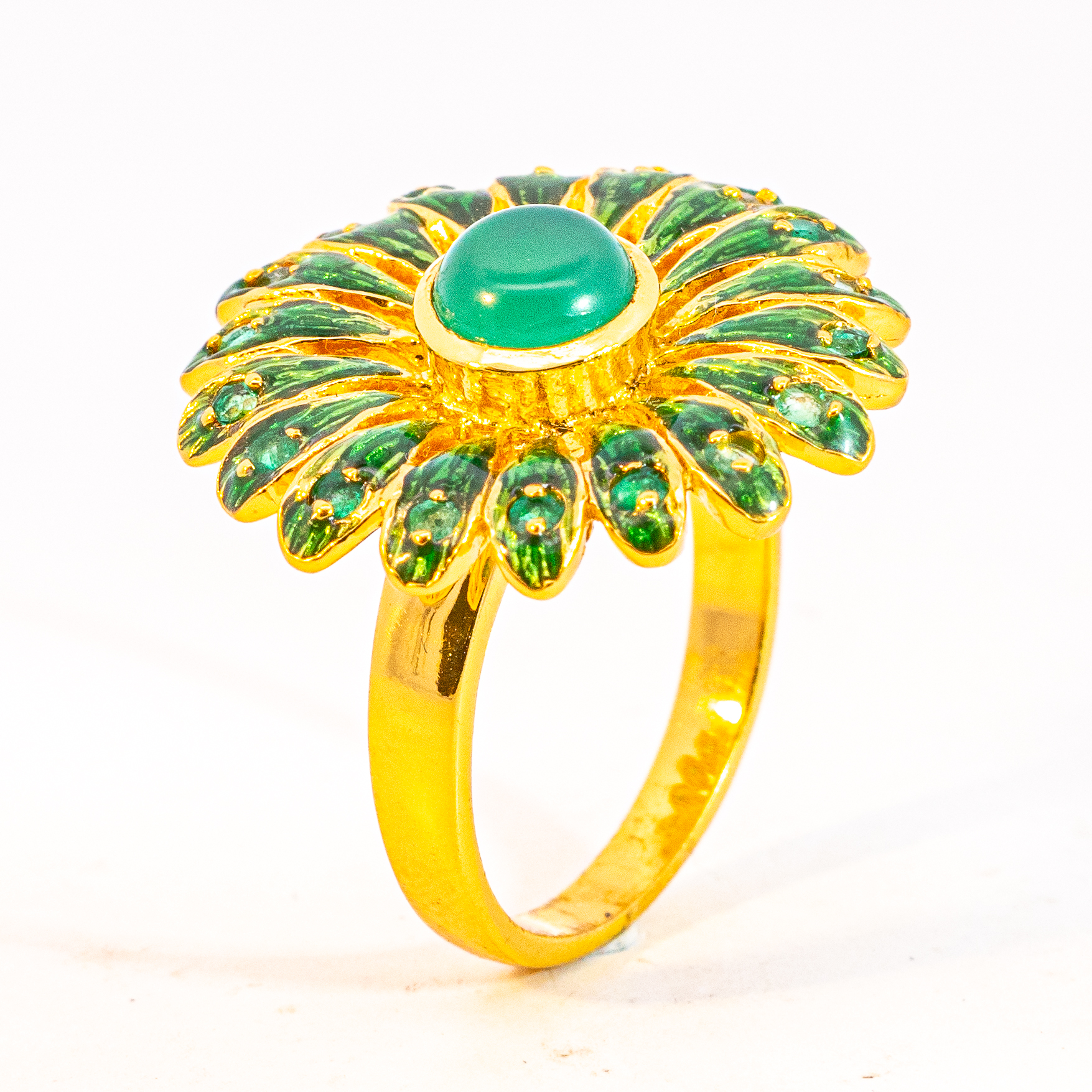 Sterling silver jewelry with 22k gold plated, natural stone and enamel.