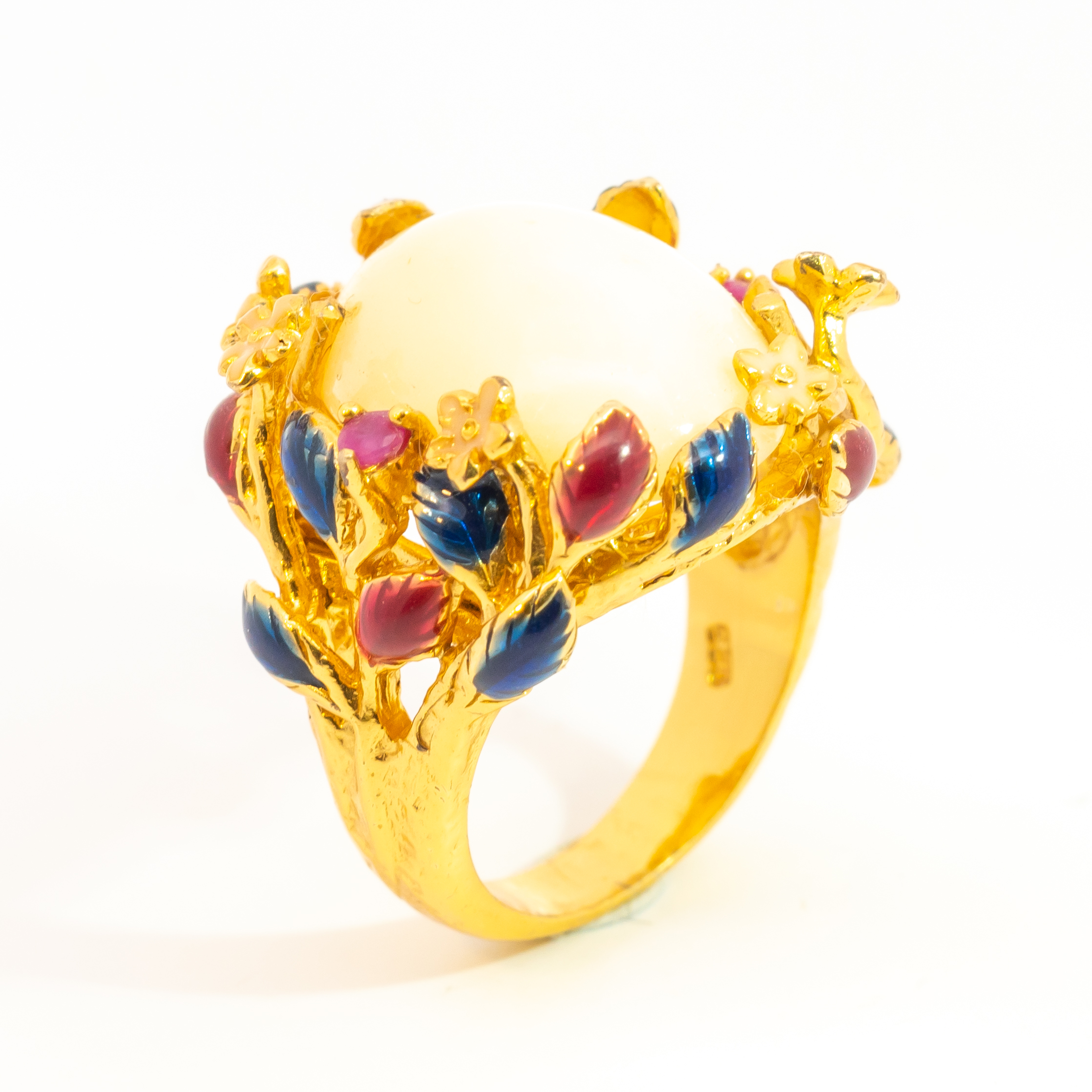 Sterling silver jewelry with 22k gold plated, natural stone and enamel.