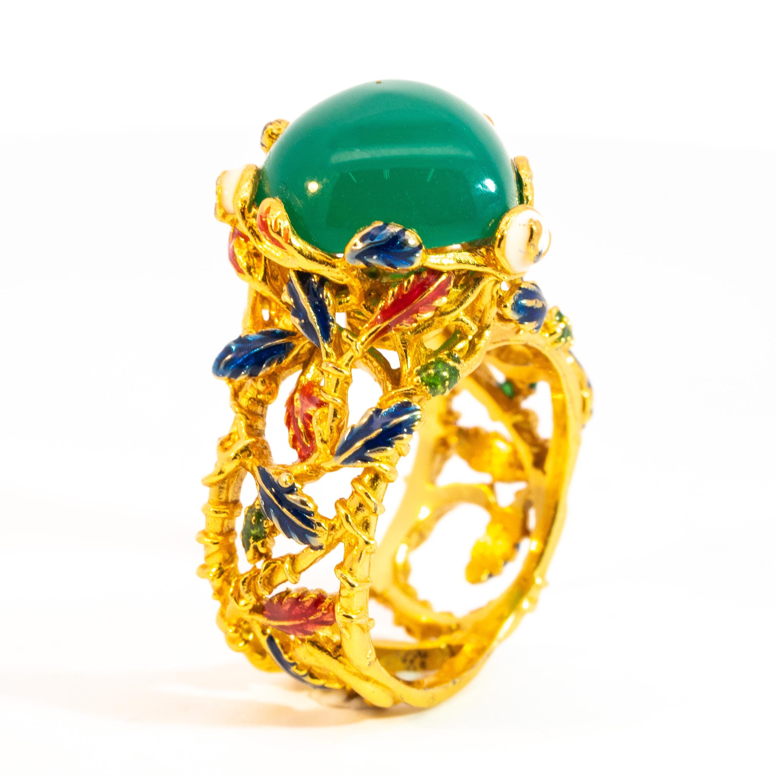 Sterling silver jewelry with 22k gold plated, natural stone and enamel.