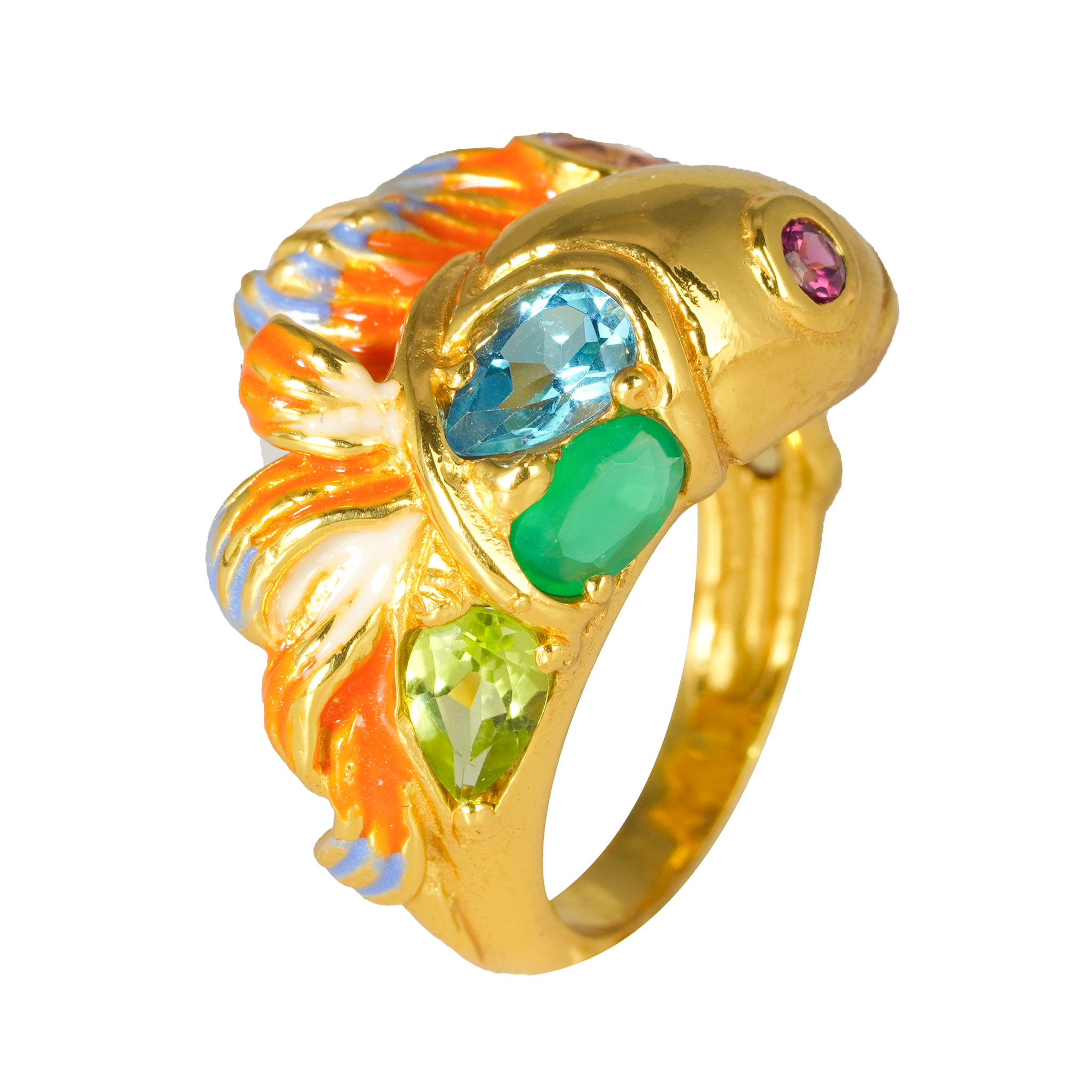 Sterling silver jewelry with 22k gold plated, natural stone and enamel.