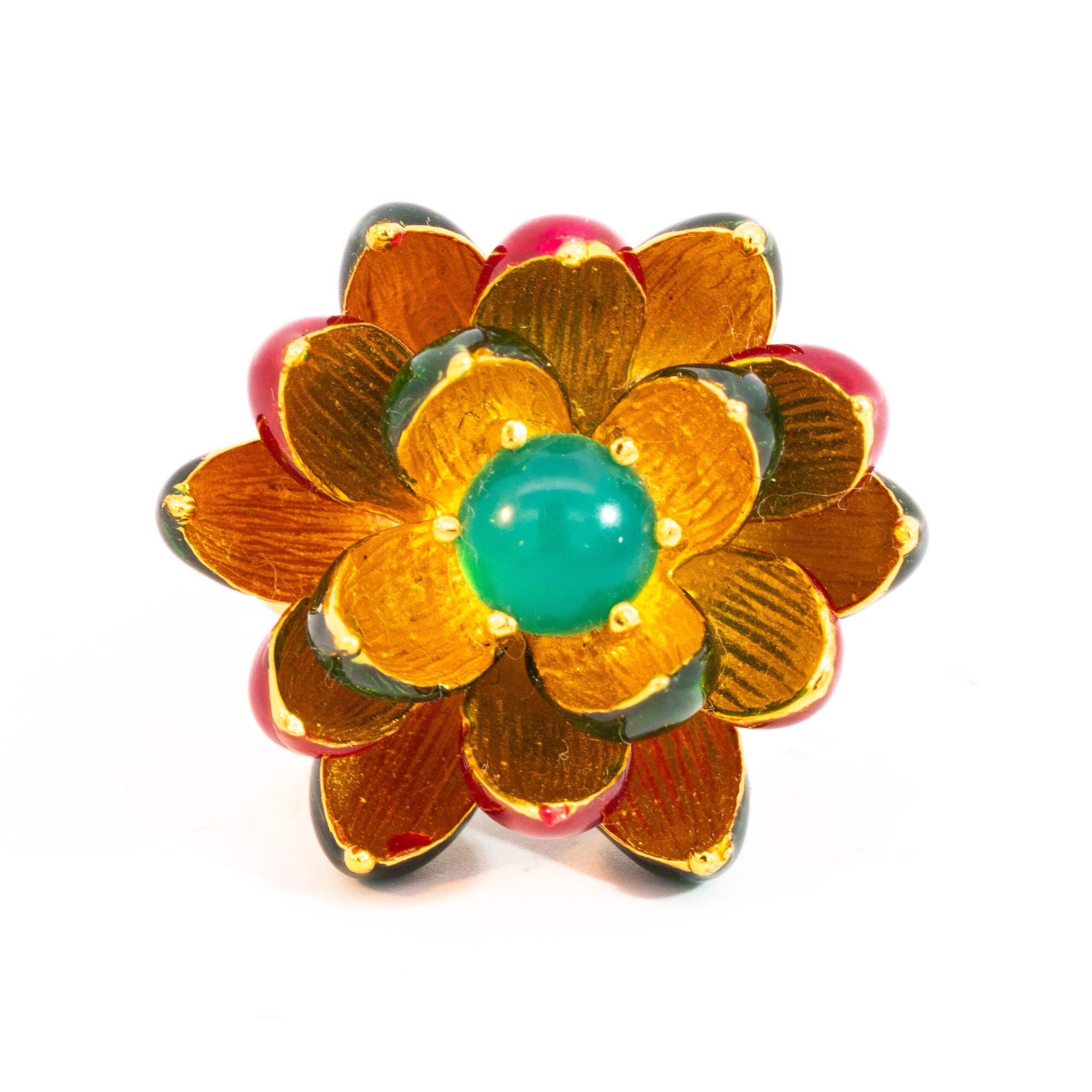 Sterling silver jewelry with 22k gold plated, natural stone and enamel.