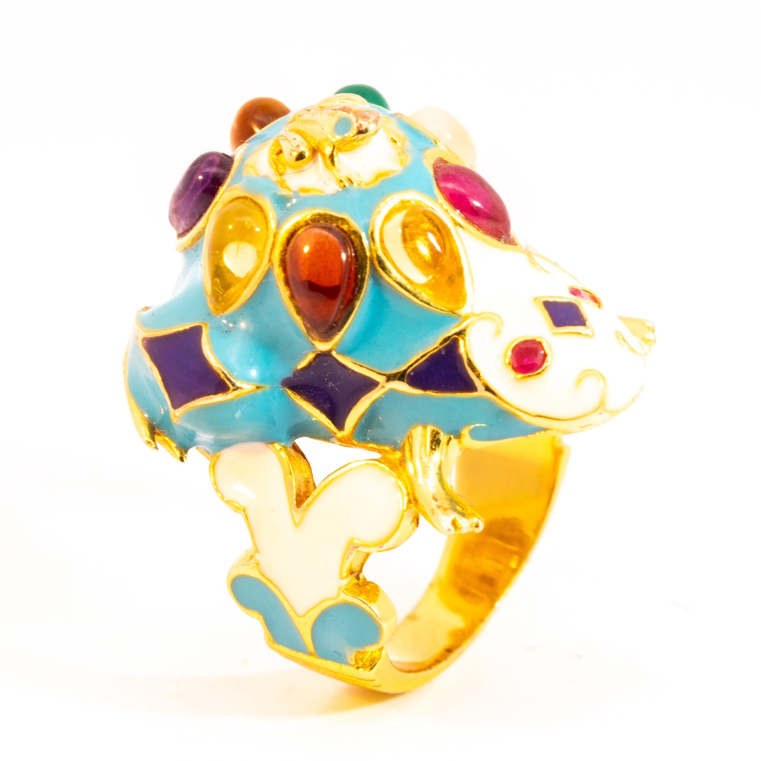 Sterling silver jewelry with 22k gold plated, natural stone and enamel.