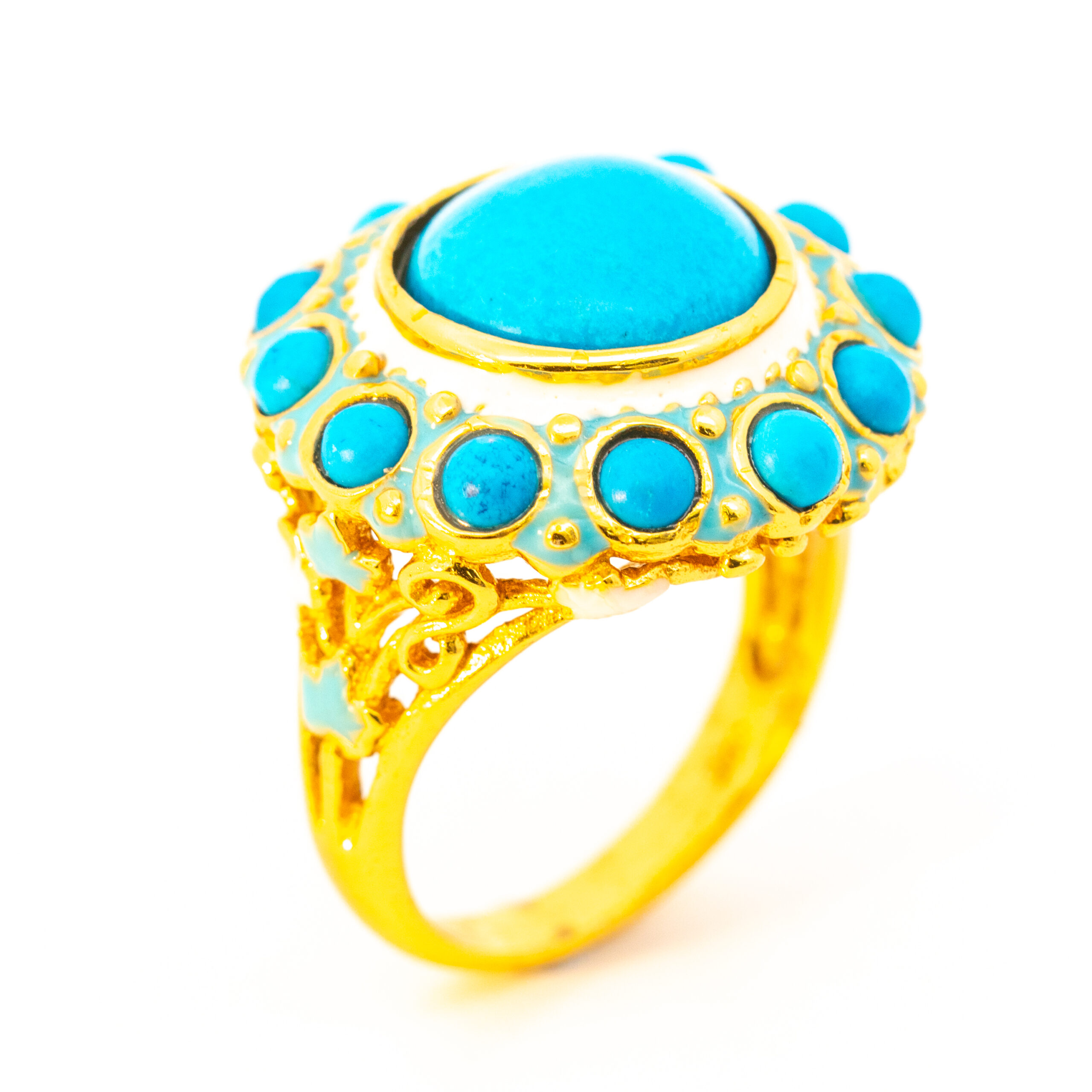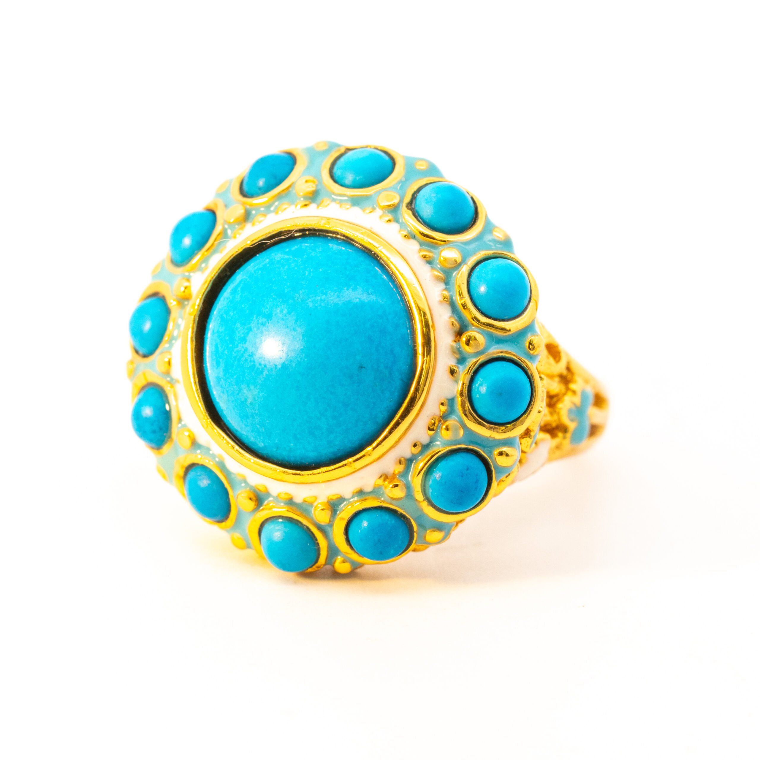Sterling silver jewelry with 22k gold plated, natural stone and enamel.