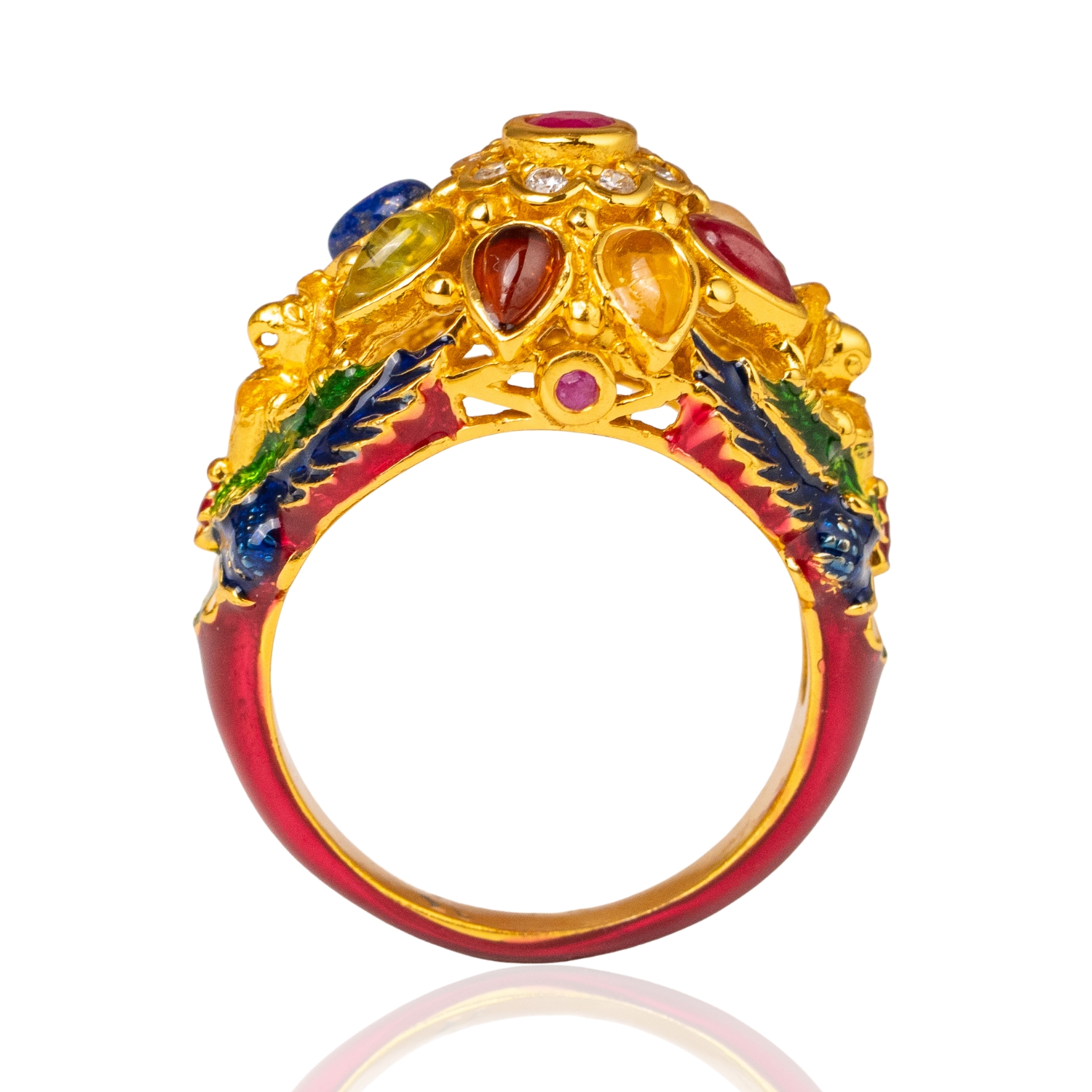 Sterling silver jewelry with 22k gold plated, natural stone and enamel.