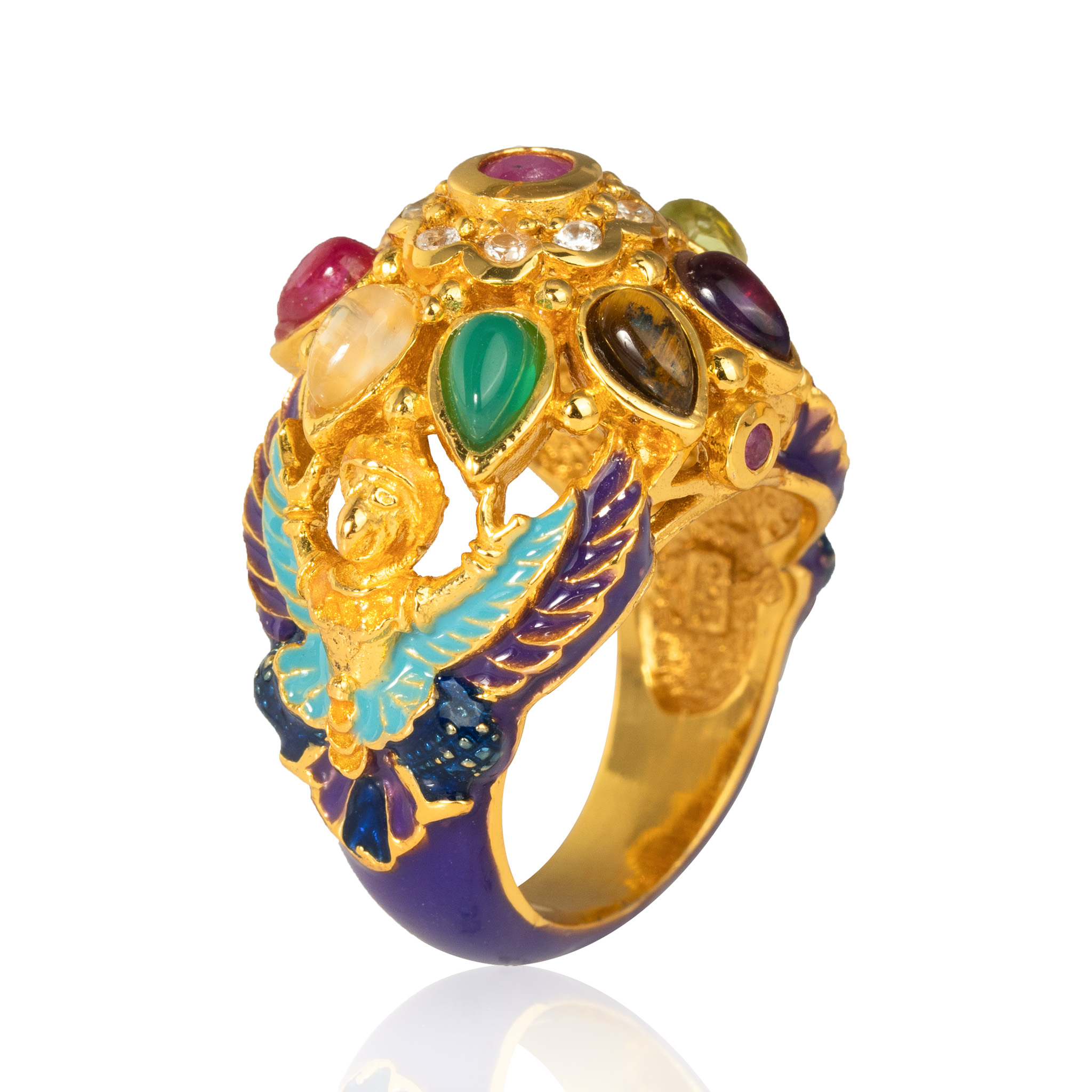 Sterling silver jewelry with 22k gold plated, natural stone and enamel.
